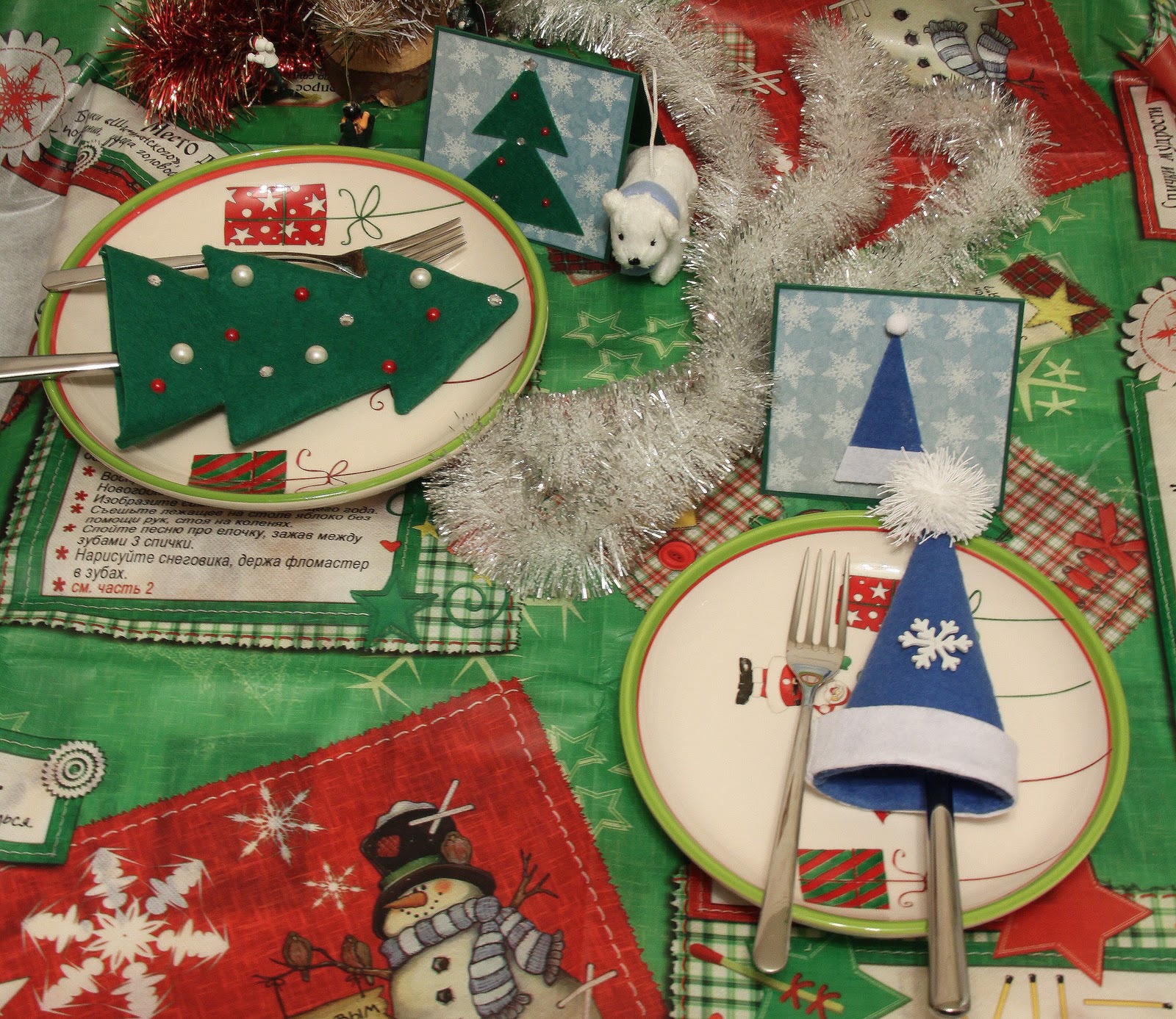 Usar guardanapos de papel ao servir o jantar é um sinal de mau gosto. Eles parecem adequados quando comem comida de rua ou quando você come sem convidados, por exemplo, arenque. Quando bonito, e ainda mais festivo, é coberto, guardanapos de pano devem estar presentes nele.