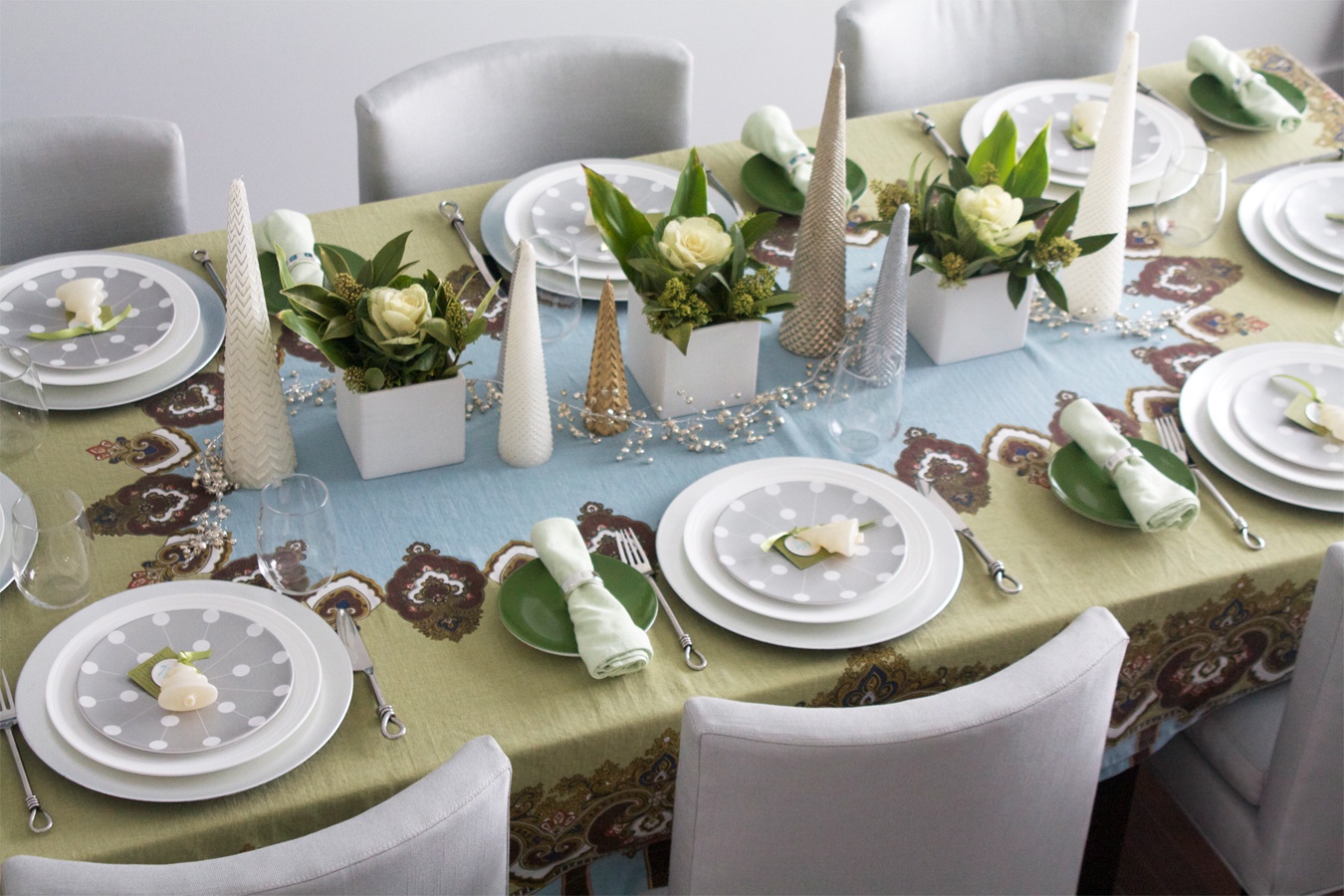 É importante prestar atenção à preparação da toalha de mesa: ela deve ser lavada e passada de modo que, em qualquer lugar, não haja dobras ou vincos. Além disso, deve caber o tamanho, as bordas podem pendurar apenas para o nível dos assentos das cadeiras, não menos. Nos cantos deve descer ao longo das pernas, uniformemente de cada lado.