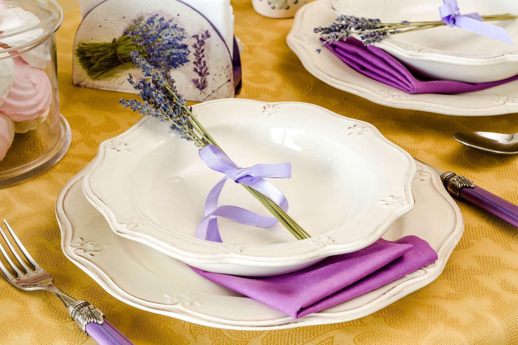 - Um prato para o segundo prato é colocado em cima e para o primeiro em cima. Este é um esquema clássico, já que quase todo cardápio de almoço envolve um prato líquido e o prato principal. Se apenas o segundo prato for servido, a opção de colocar as duas placas desaparece.
