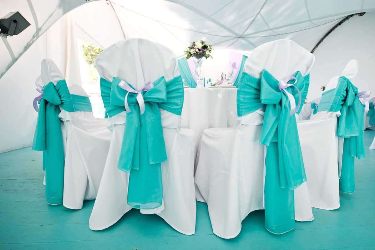 - As cadeiras devem ser ligeiramente estendidas para que os hóspedes possam sentar-se facilmente sobre elas.A distância ideal é de 40 a 50 cm da borda. Se apropriado, as cadeiras podem ser decoradas com um tecido que combina com a toalha de mesa. Se for costurado para a ordem, você pode imediatamente cuidar disso.