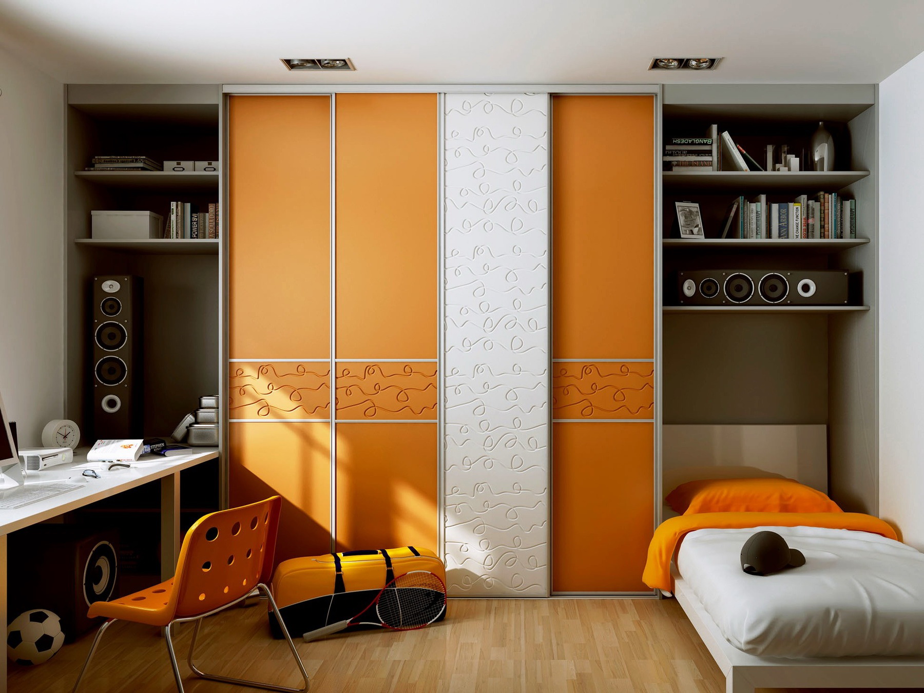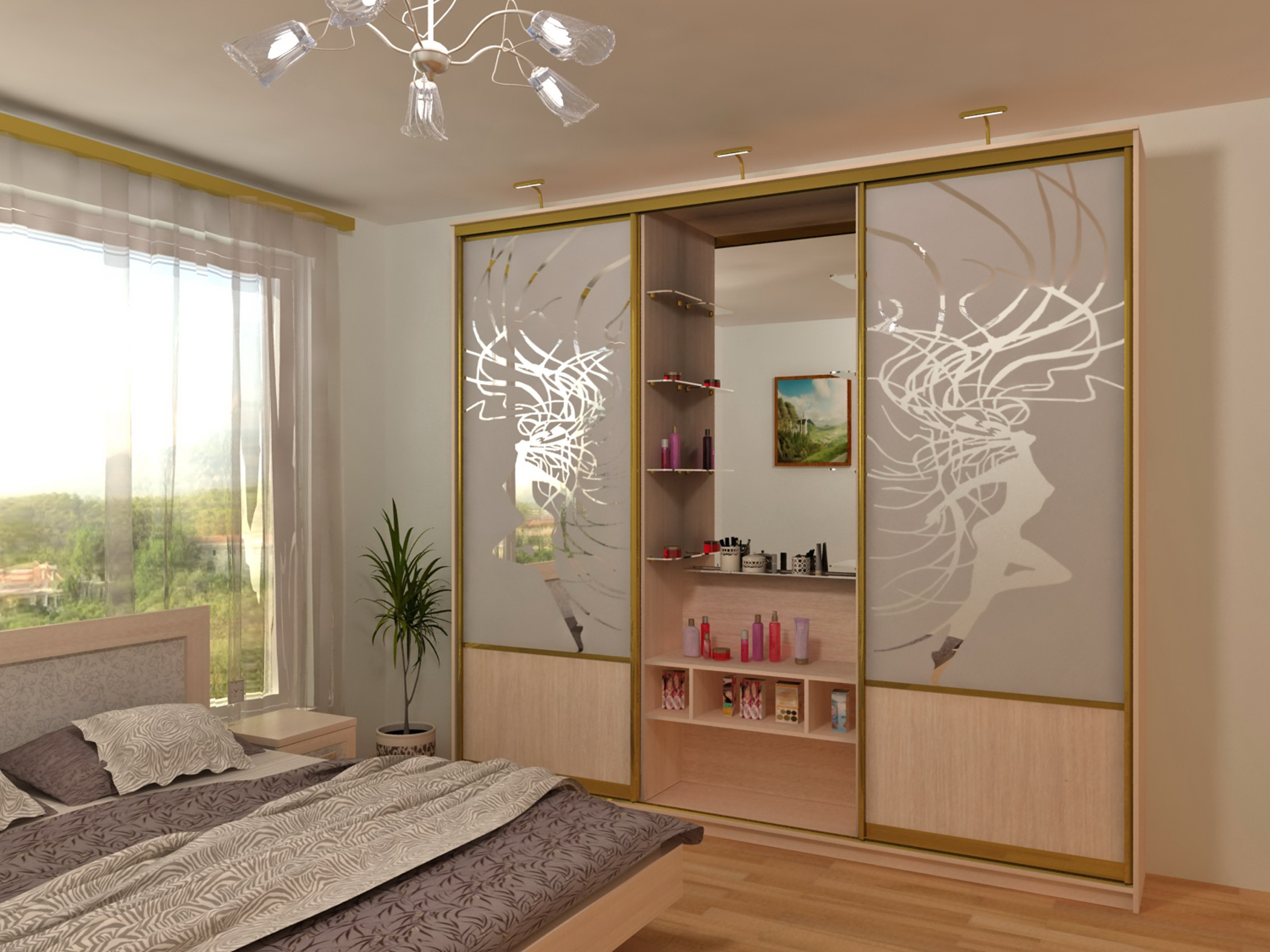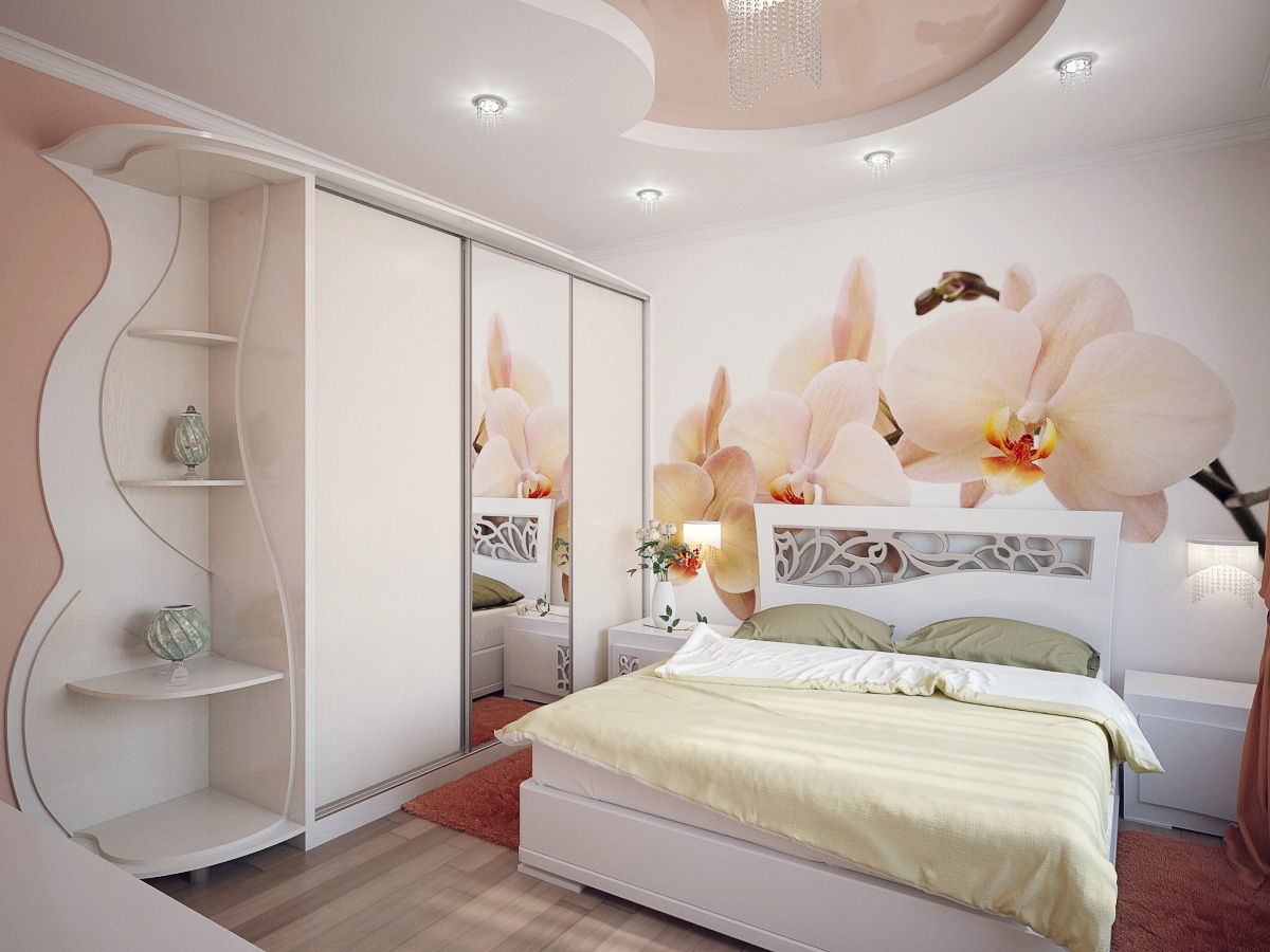 A fachada do armário para um quarto moderno pode ser animada pelas seguintes técnicas: