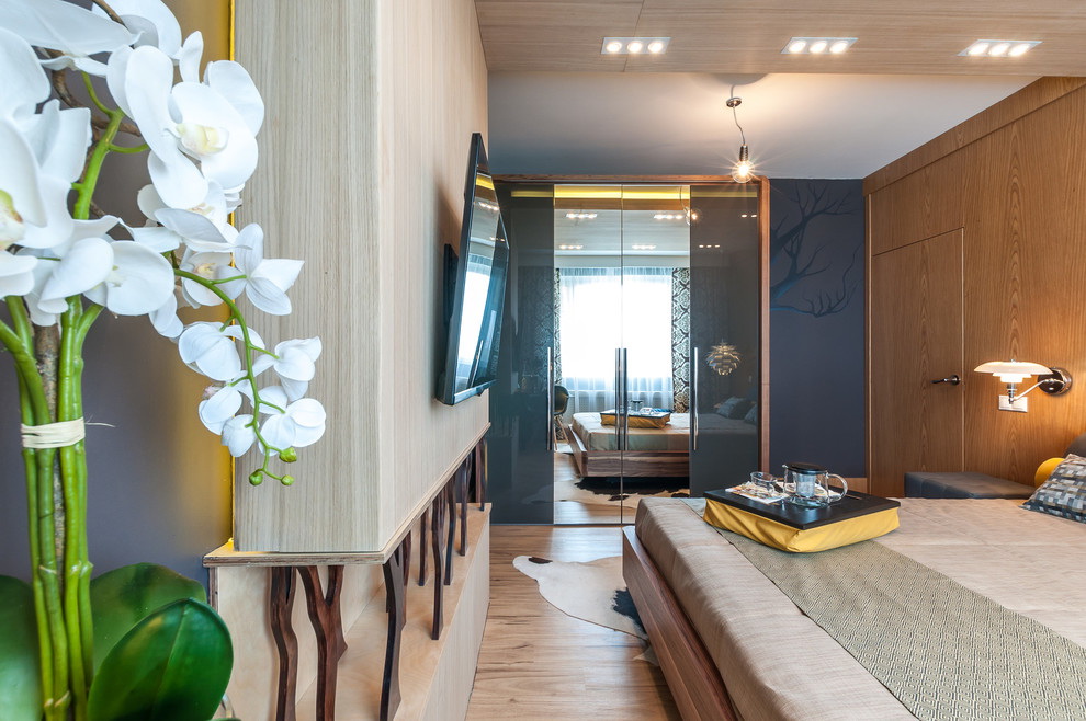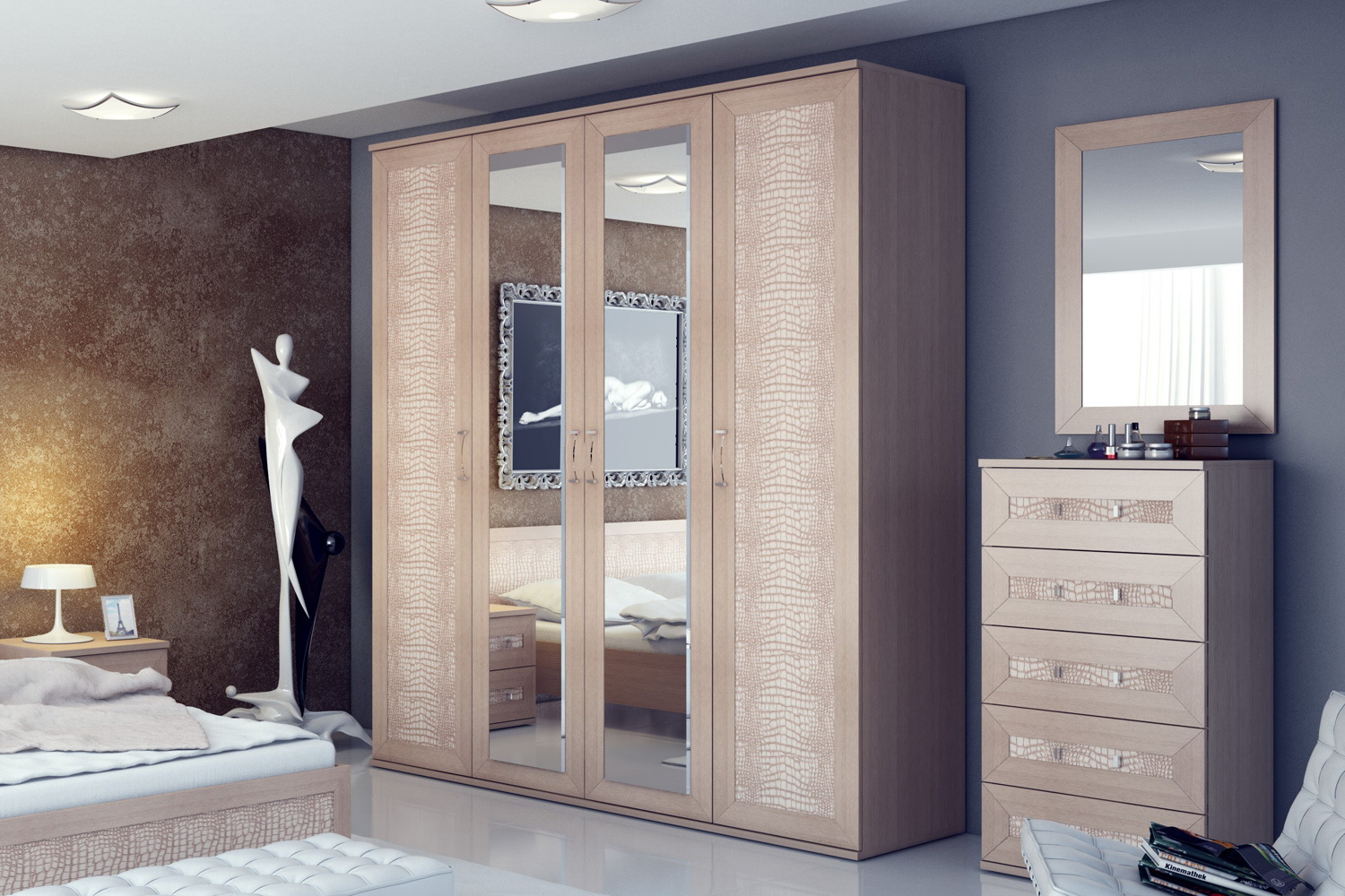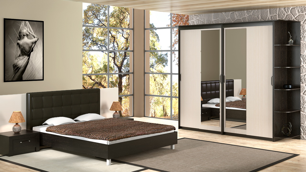 A fachada do armário para um quarto moderno pode ser animada pelas seguintes técnicas:
