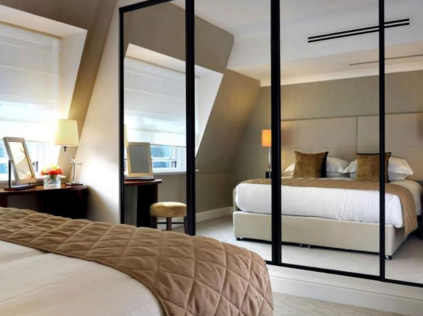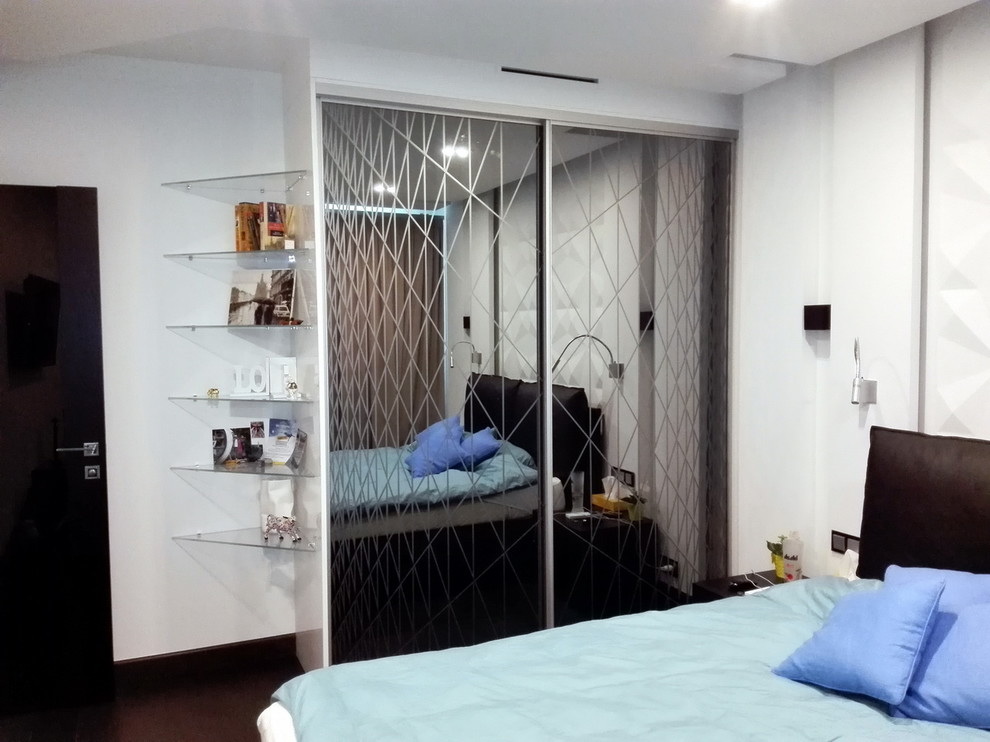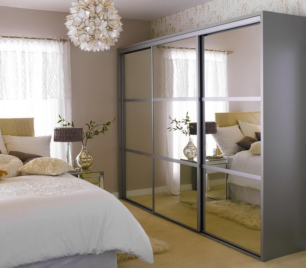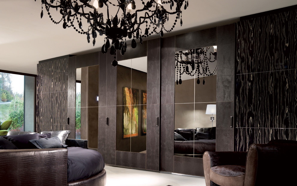Na fabricação do gabinete, muitas vezes são usados espelhos nas portas. Assim, a mobília ganha funcionalidade adicional e o quarto - uma expansão visual do espaço.
