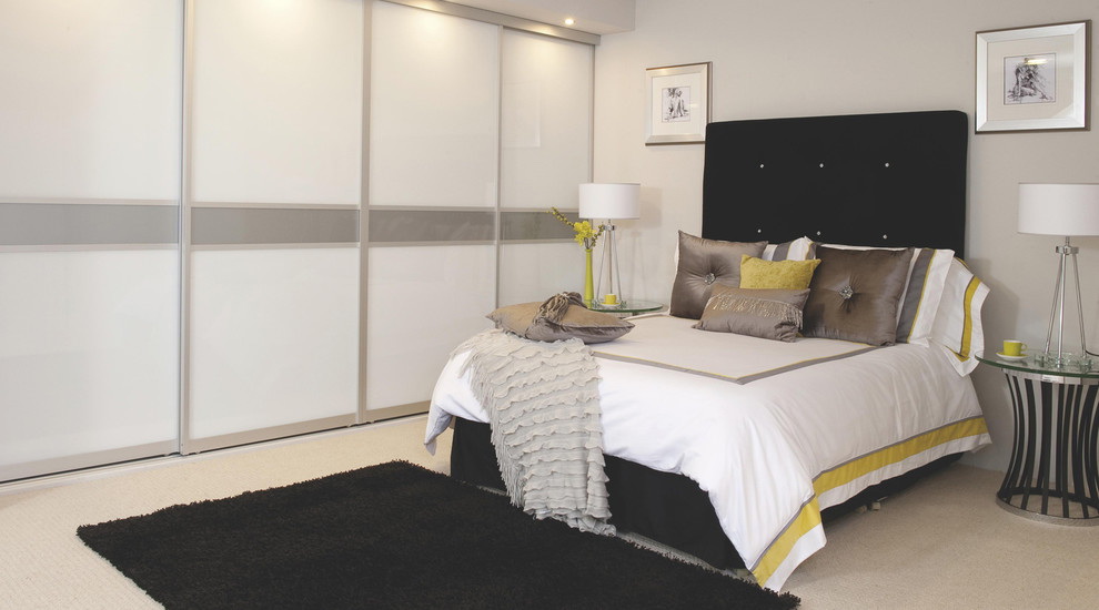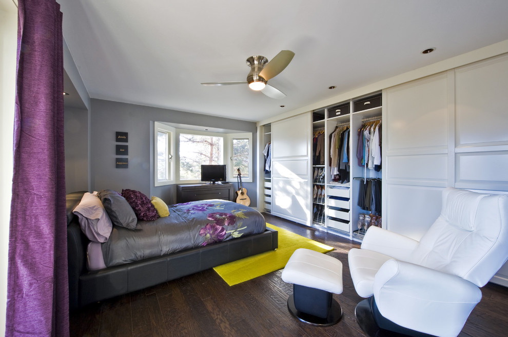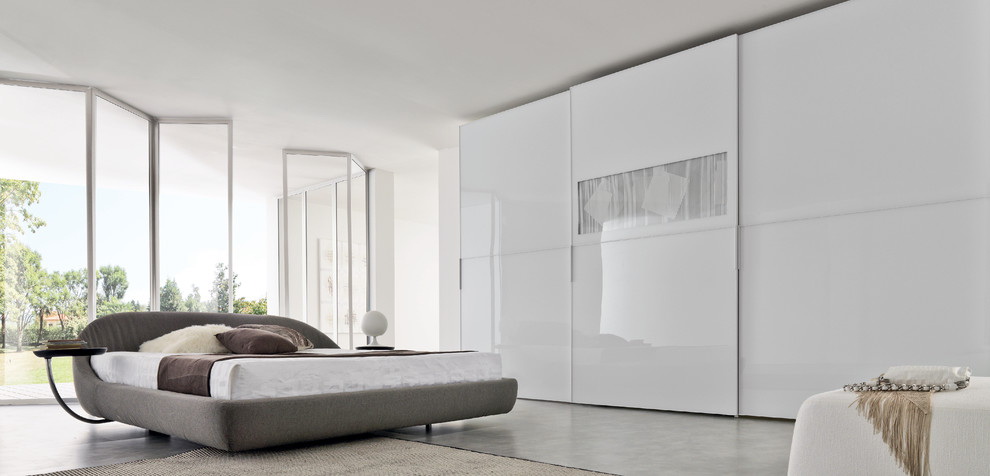 Roupeiros modernos no quarto podem ser de vários tamanhos e decisões de estilo, dependendo das preferências e orientação geral do interior.