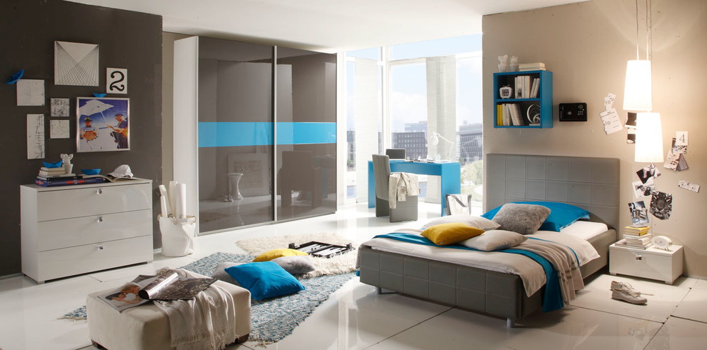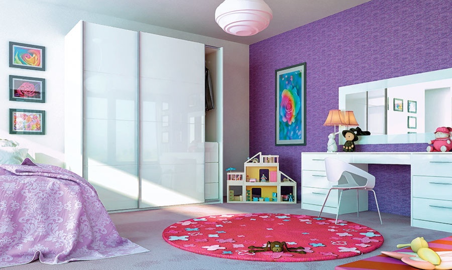 A fachada com acabamento lacado e brilho fosco é uma das opções da moda. Neste caso, o interior do quarto torna-se mais refinado.