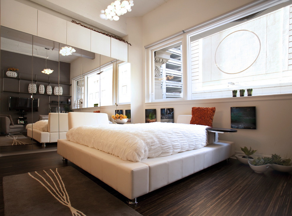 Esta é uma das opções de design mais populares. Visualmente aumenta o tamanho do quarto.