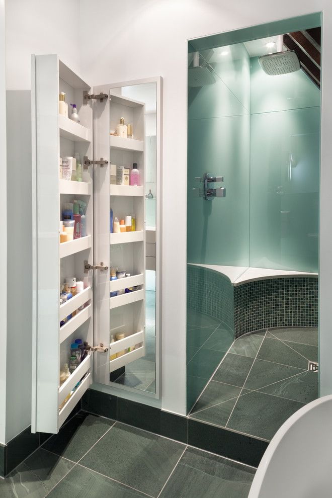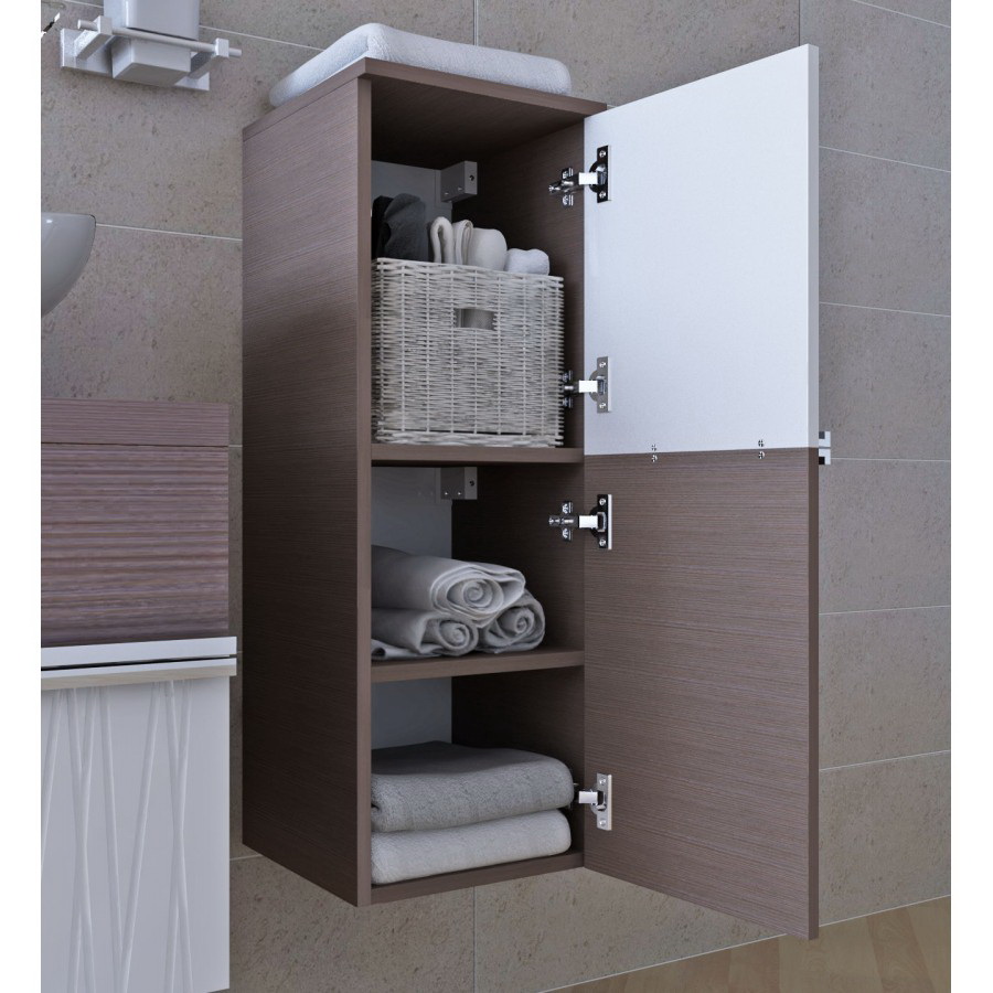 Pode pendurar gabinete afundar e guarde itens de higiene com toalhas. Ele também pode ser colocado acima do vaso sanitário, mas em um nível que não acidentalmente bateu sua cabeça.