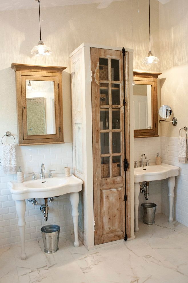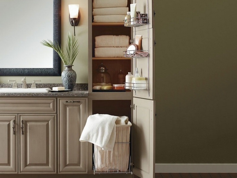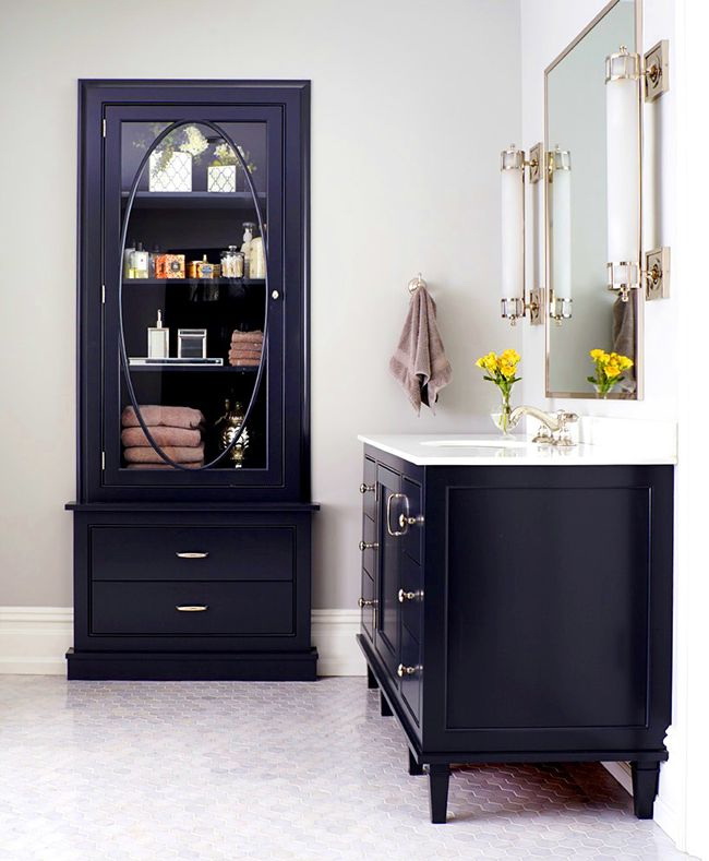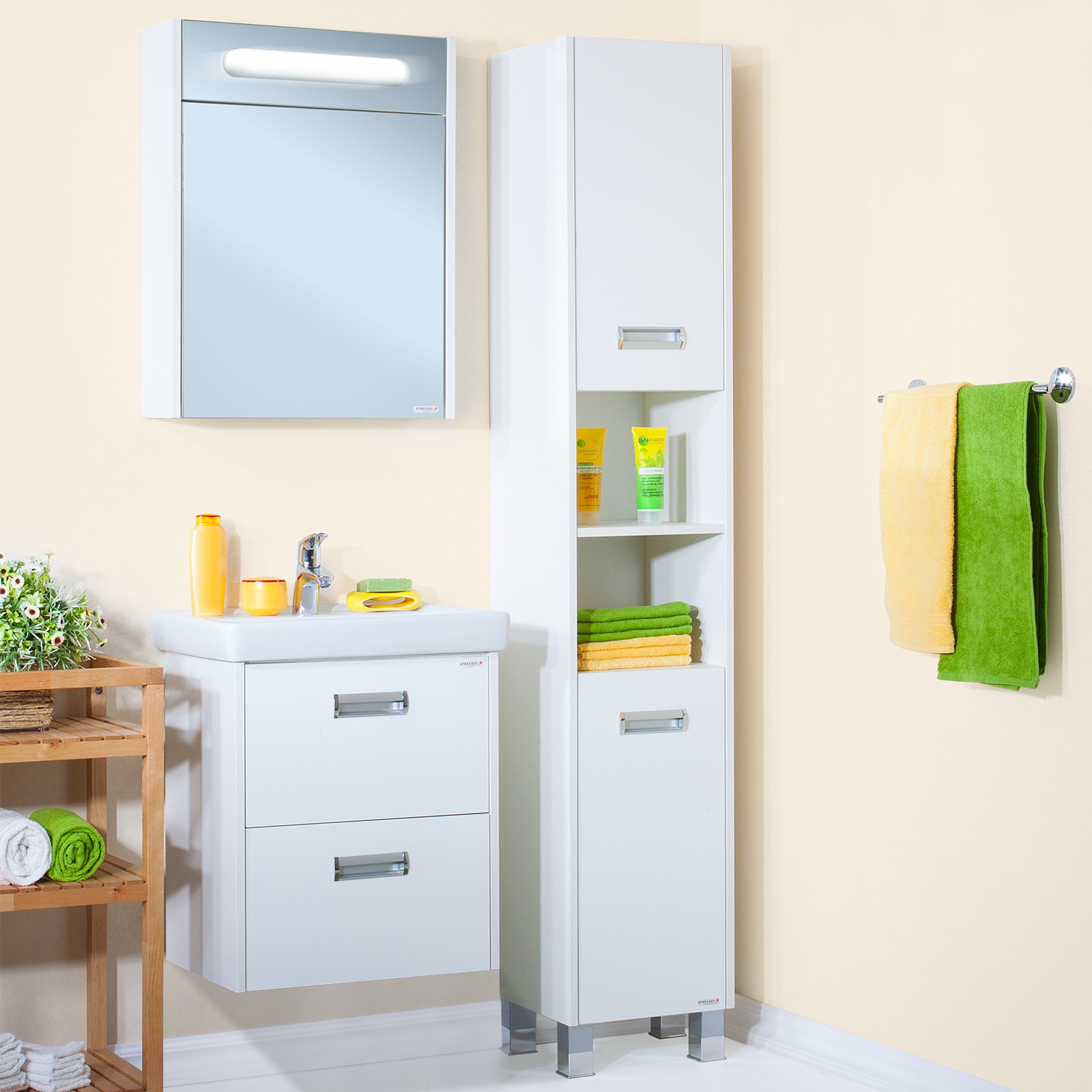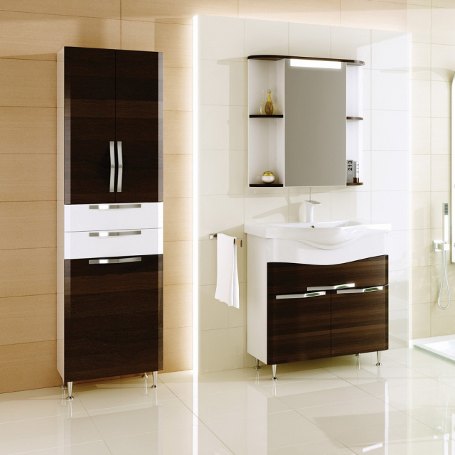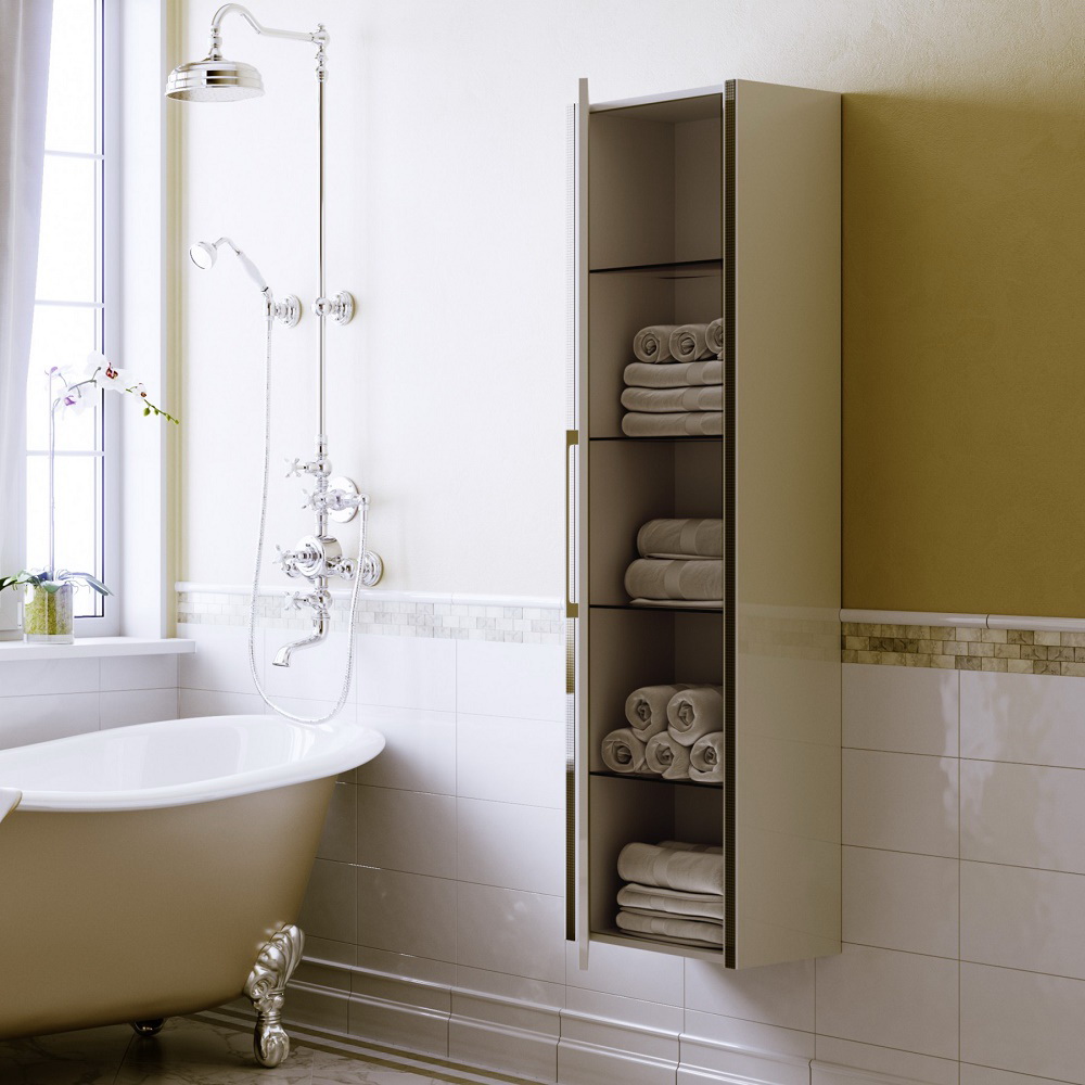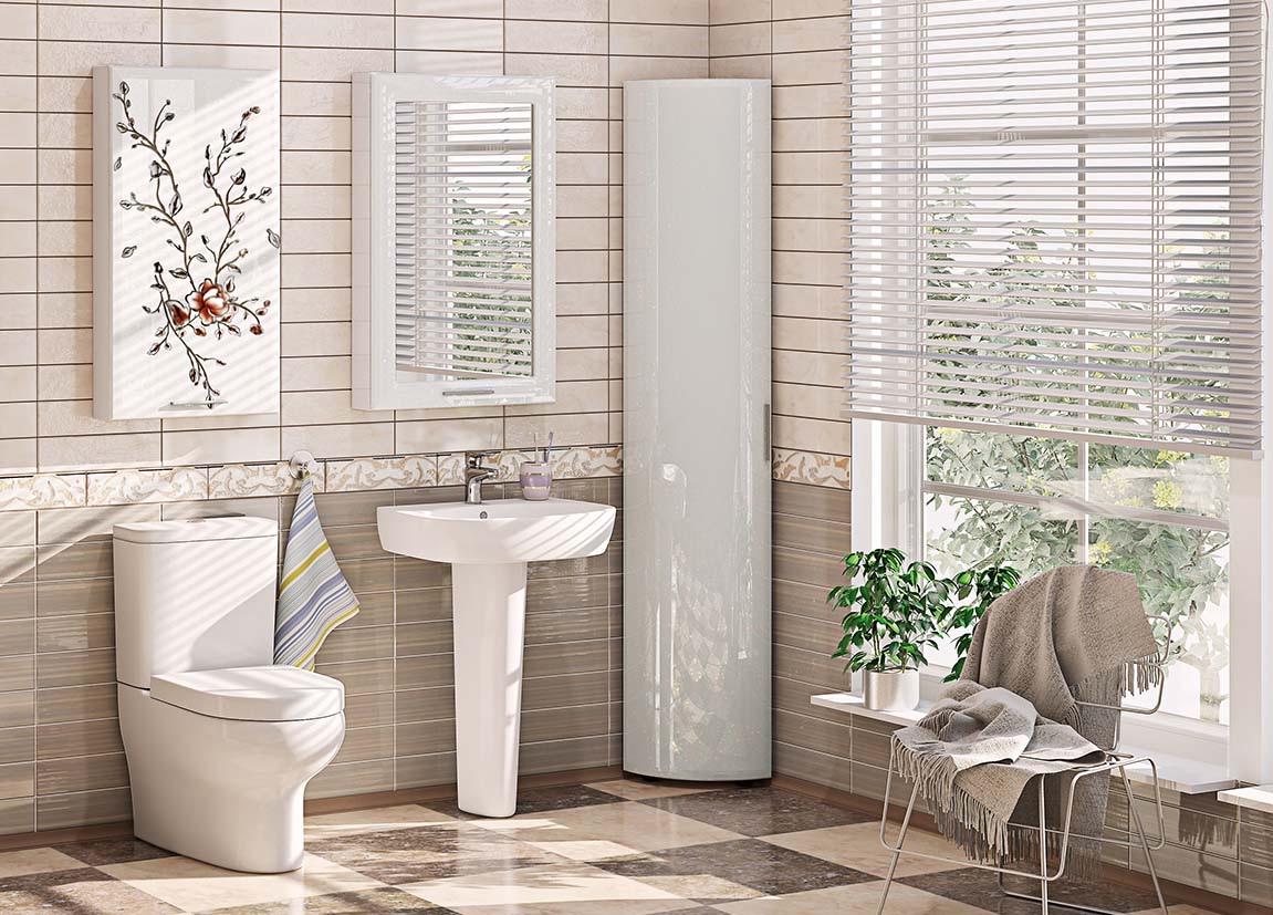Como geralmente não há espaço suficiente no banheiro, são criados gabinetes altos e estreitos especiais. Os principais estilos de tais móveis: