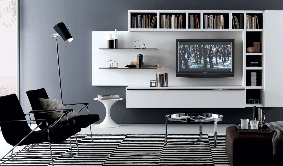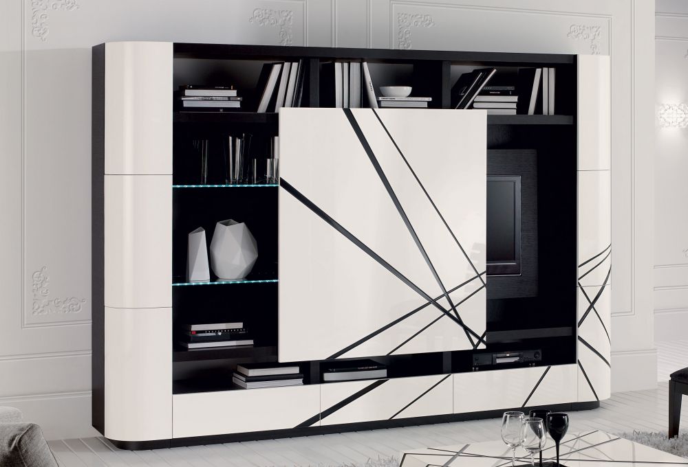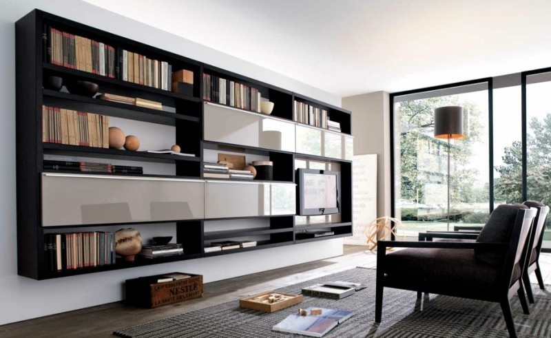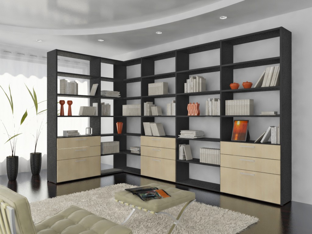 Os atuais armários de parede parecem um pouco diferentes e muito mais diversificados e convenientes: o design modular cria diferentes combinações de elementos que são montados em módulos separados. Aqui uma pessoa tem a capacidade de ter prateleiras, tanto linearmente como criando ângulos. By the way, especificamente os tipos angulares de paredes são mais populares por causa de sua compactação e leveza, dado que em grandes cidades os quartos são muitas vezes de tamanho pequeno.