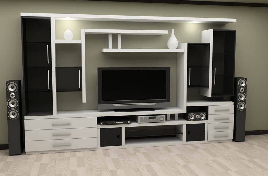 Este é um tipo de suporte para equipamentos. On tampo da mesa na maioria das vezes custam tv, alto-falantes e console de jogos, mas todos podem decidir o que colocar lá, sozinhos. Este elemento é padrão no meio da estrutura.