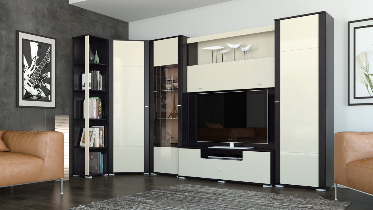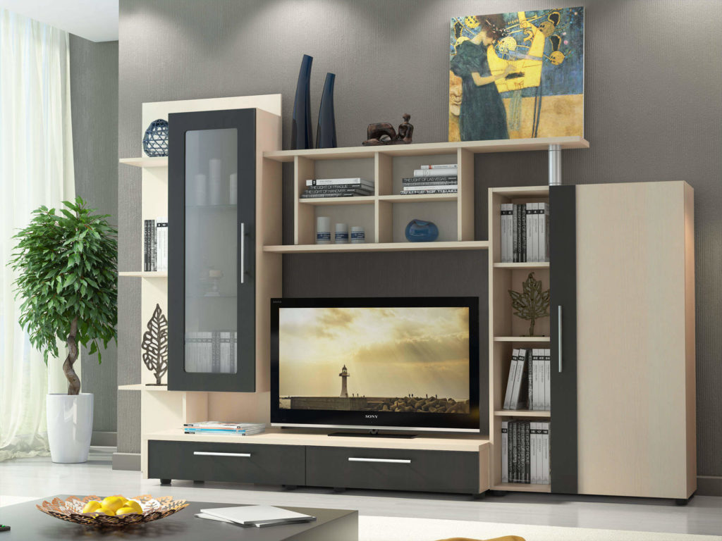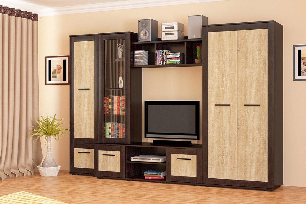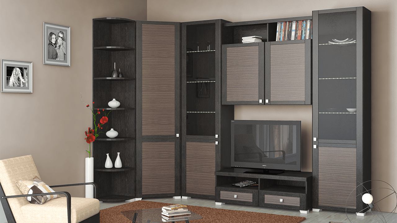 Você praticamente não verá a construção monolítica da parede do gabinete agora, porque é completamente inconveniente em nossa vida cotidiana. É por isso que é necessário considerar diferentes conjuntos de elementos para encontrar o que mais lhe convier. Na composição pode ser localizado: