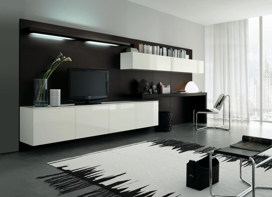 Mini-paredes será uma decoração maravilhosa de qualquer sala de estar e ficará especialmente orgânica no interior. apartamentos estúdio. By the way, no último caso, este mobiliário também é útil para separar as duas zonas em uma sala grande. Mini-paredes são perfeitas para quartos de estilo. sótão e futurismo.