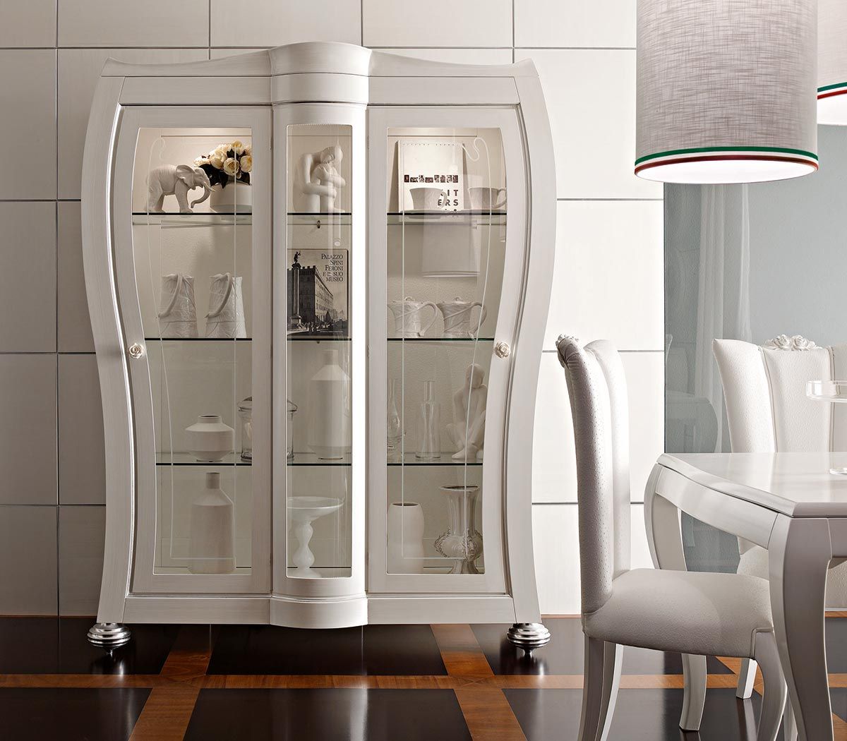 Adequado para serviços e outros elementos da composição, devido à capacidade de armazenar itens realmente bonitos que você quer mostrar e que você quer se orgulhar. Por exemplo, prêmios ou presentes podem ser colocados atrás do vidro do aparador. Você deve ter um cuidado especial com os aparadores com prateleiras de vidro - verifique com que segurança eles estão fixos e também não coloque objetos muito pesados sobre eles.