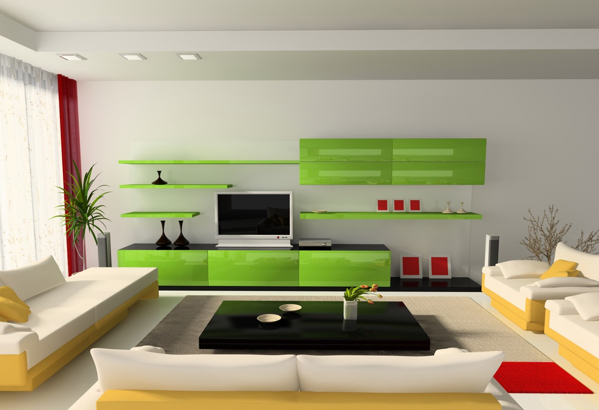 A cor mais brilhante não é adequada para todos, embora você possa criar um design muito agressivo e perturbador de sua sala de estar. Deve ser entendido que essa ideia pode afetar gravemente a condição de uma pessoa no caso de sua residência permanente em tal sala.