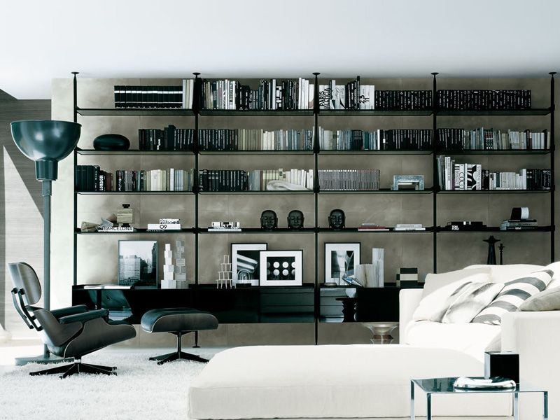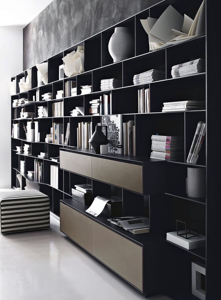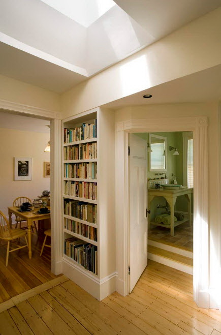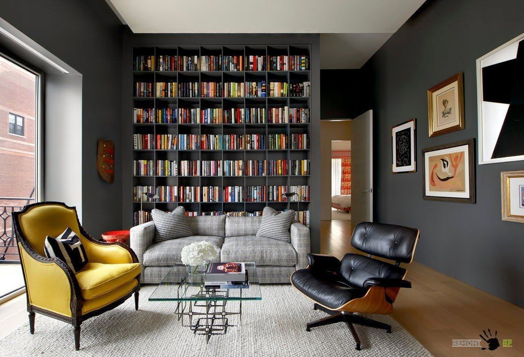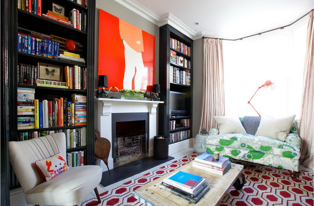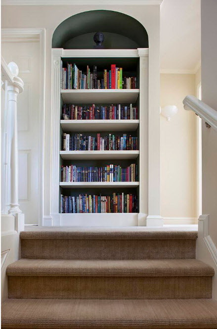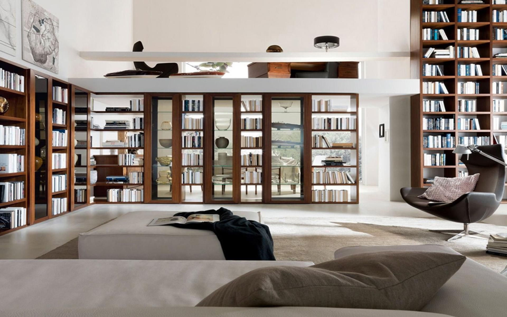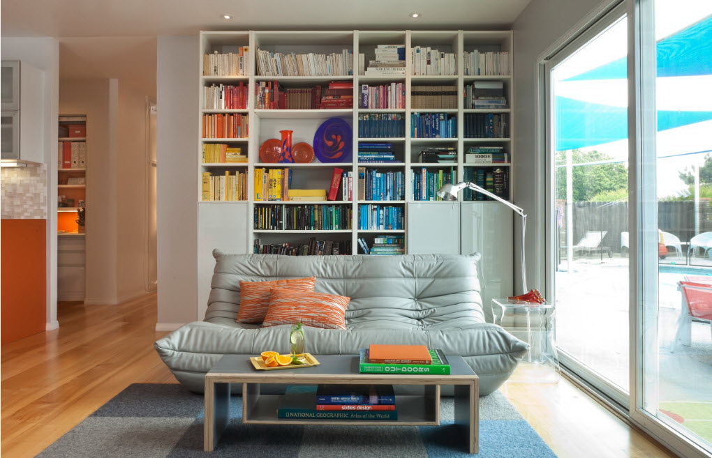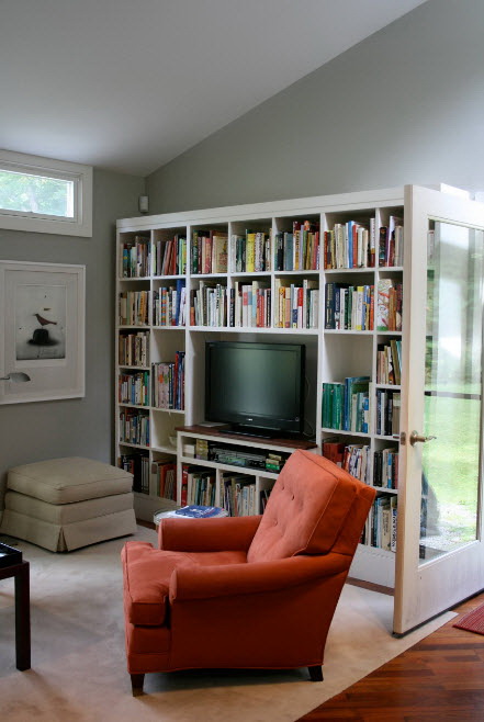 No design moderno, muitas vezes há opções quando uma estante está localizada no corredor, na loggia, e até mesmo em casa de banho. No escritório é melhor colocar ao lado da escrita a mesa e computador. Para colocar mobília em o quarto ou criança Não recomende: devido ao acúmulo de poeira, pode ocorrer uma reação alérgica.