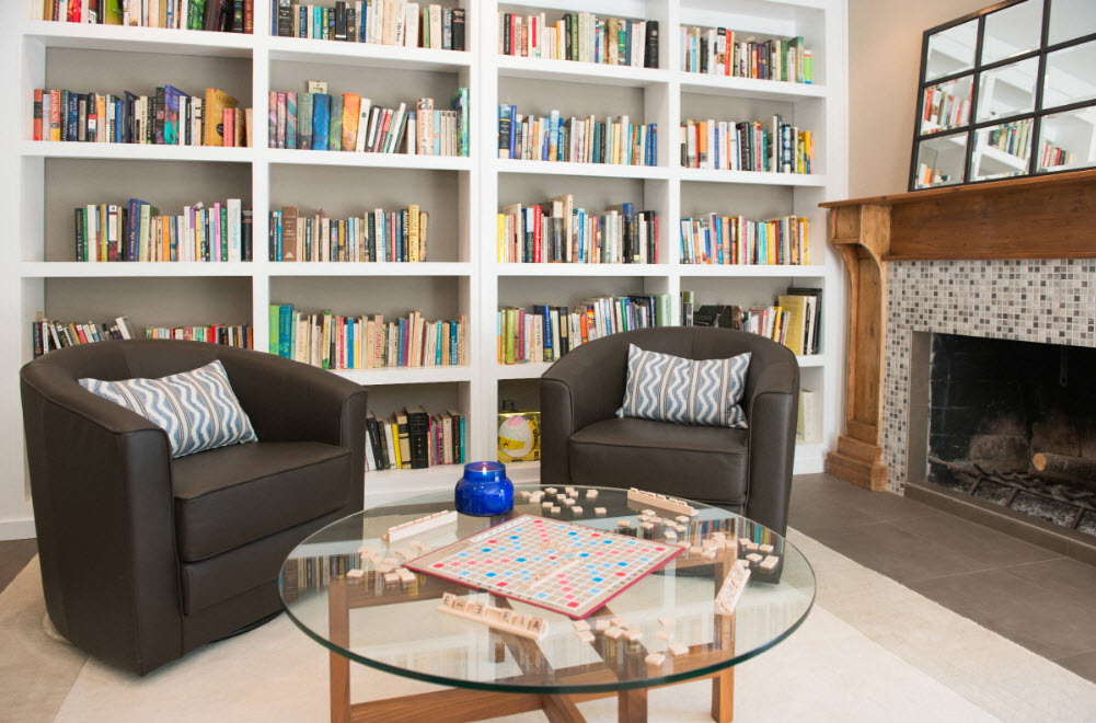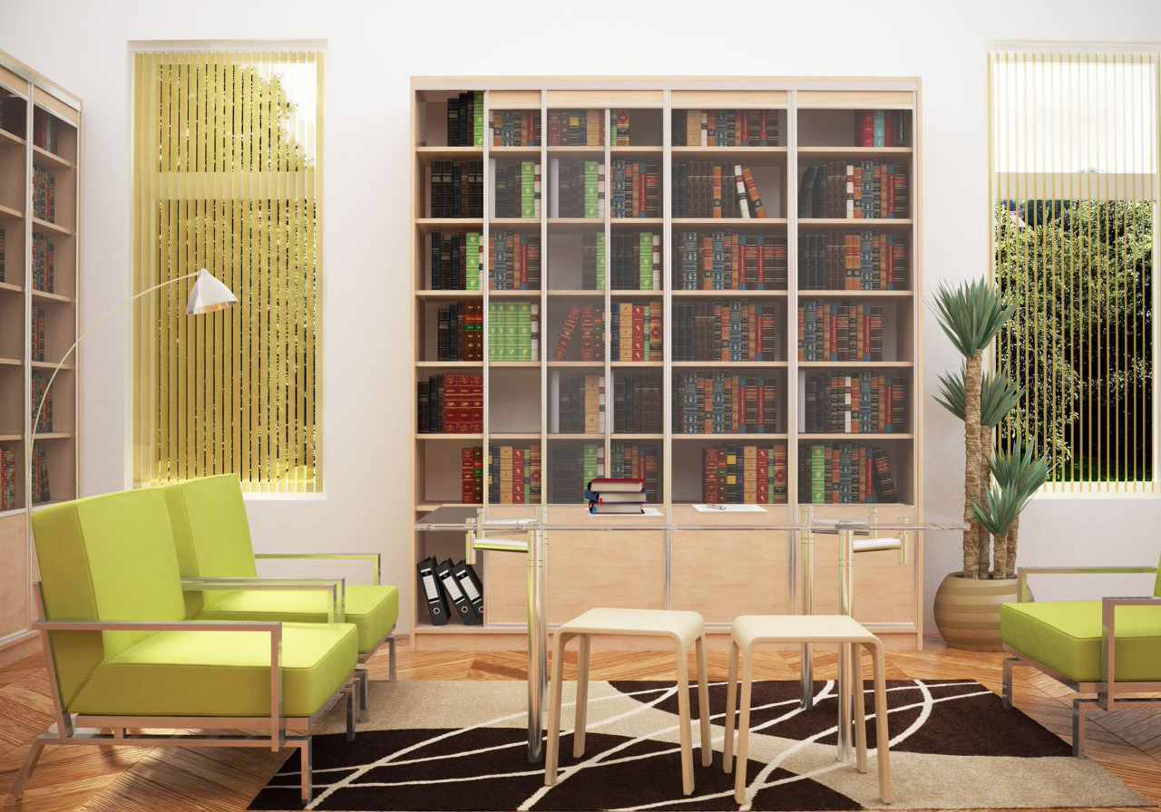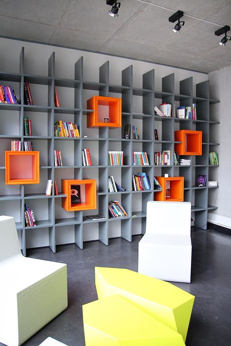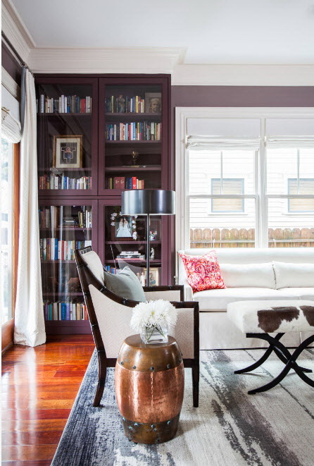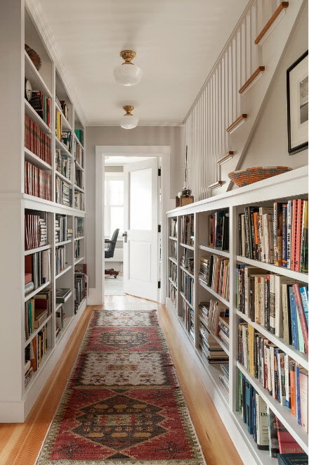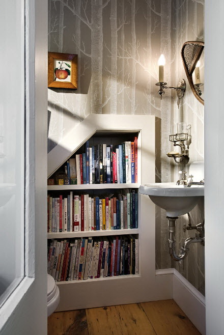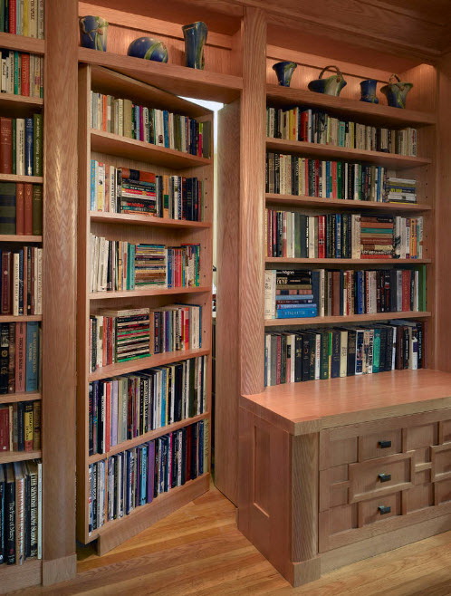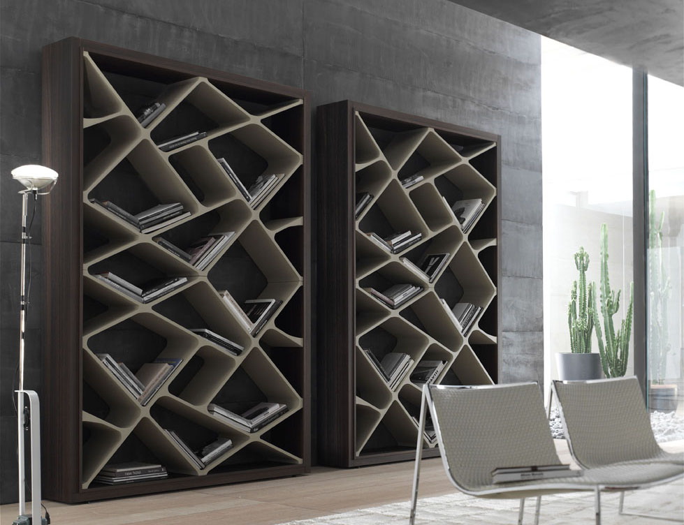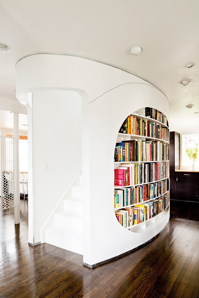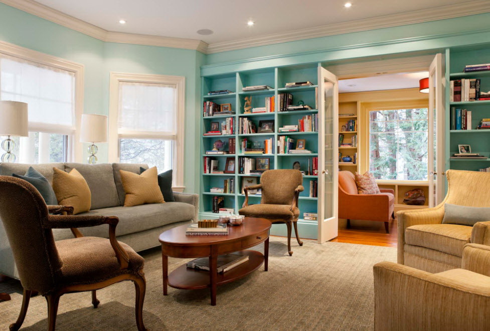 No design moderno, muitas vezes há opções quando uma estante está localizada no corredor, na loggia, e até mesmo em casa de banho. No escritório é melhor colocar ao lado da escrita a mesa e computador. Para colocar mobília em o quarto ou criança Não recomende: devido ao acúmulo de poeira, pode ocorrer uma reação alérgica.