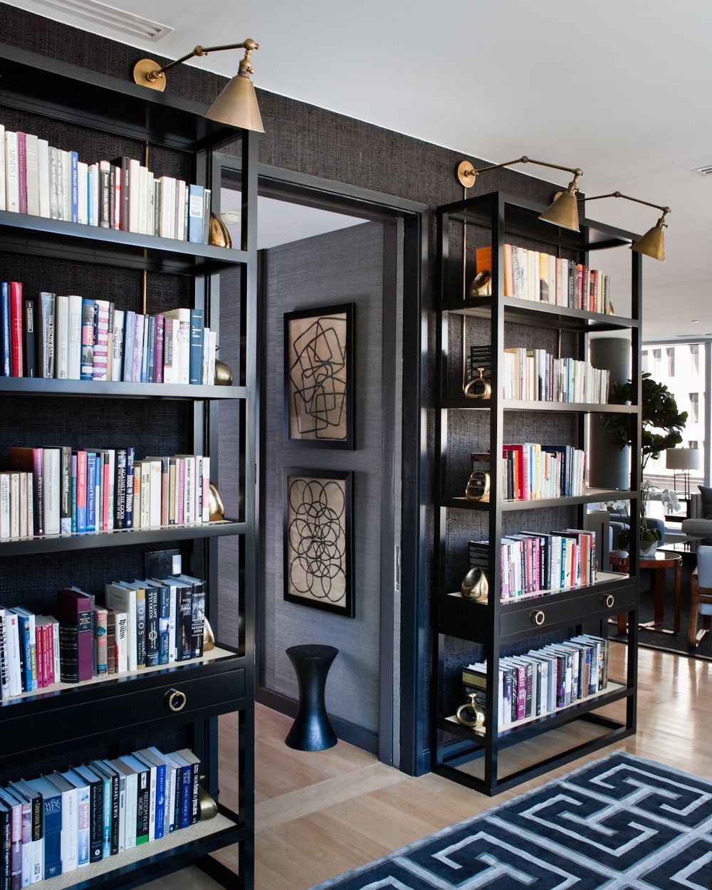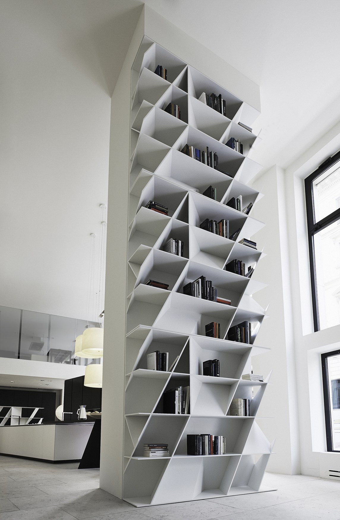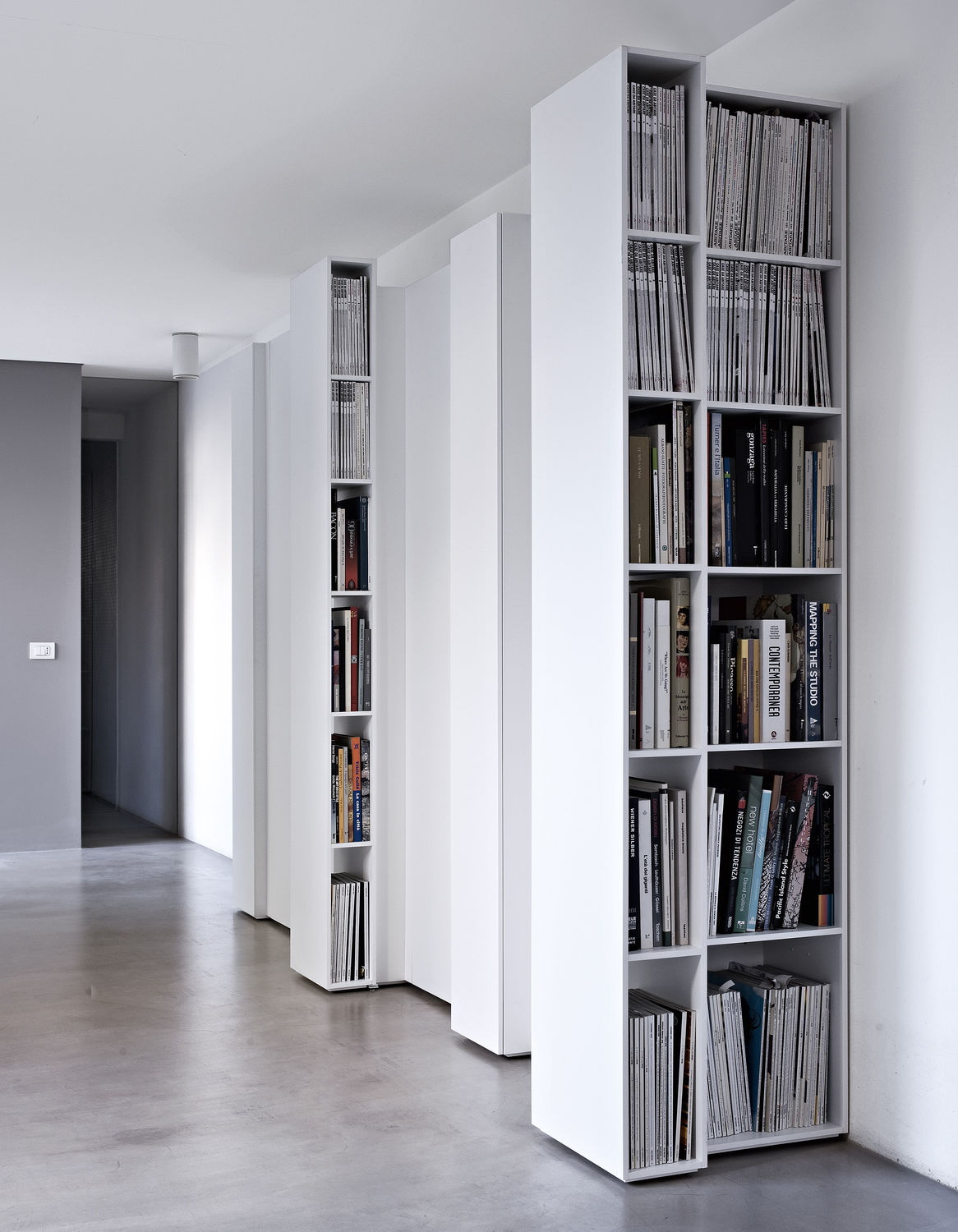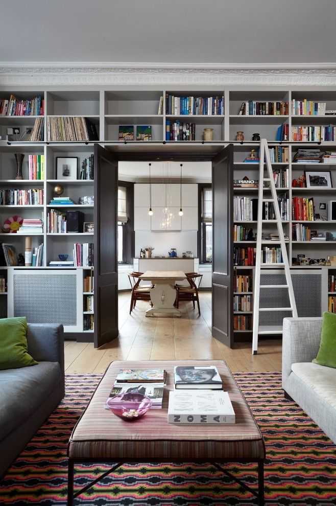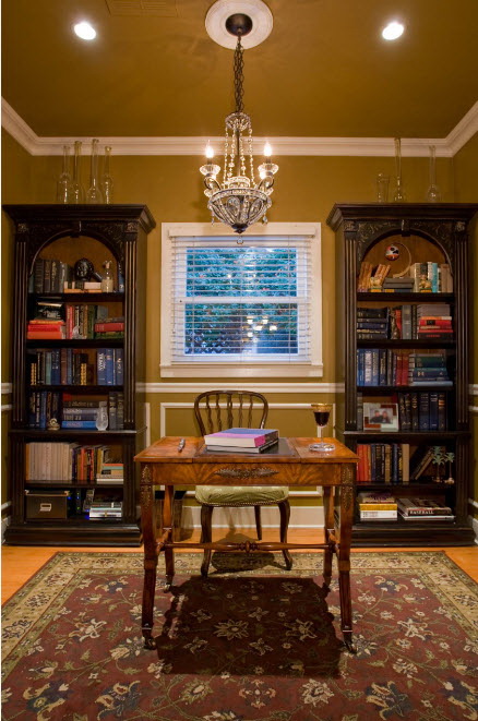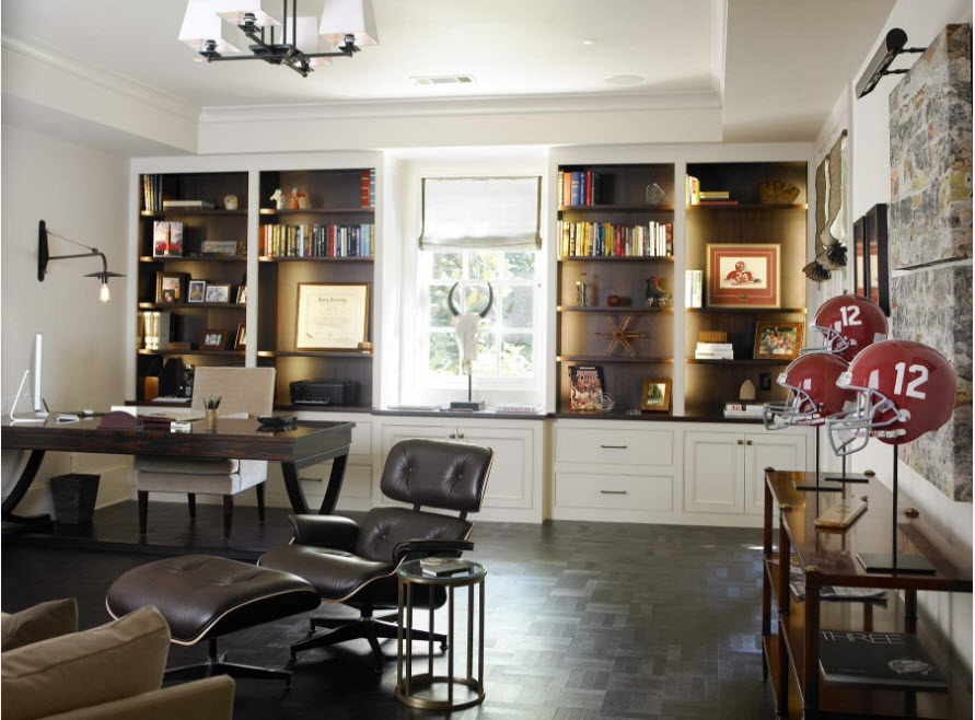 No design moderno, muitas vezes há opções quando uma estante está localizada no corredor, na loggia, e até mesmo em casa de banho. No escritório é melhor colocar ao lado da escrita a mesa e computador. Para colocar mobília em o quarto ou criança Não recomende: devido ao acúmulo de poeira, pode ocorrer uma reação alérgica.