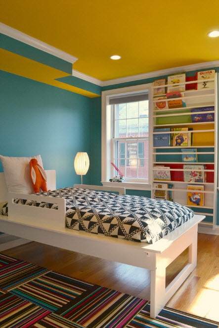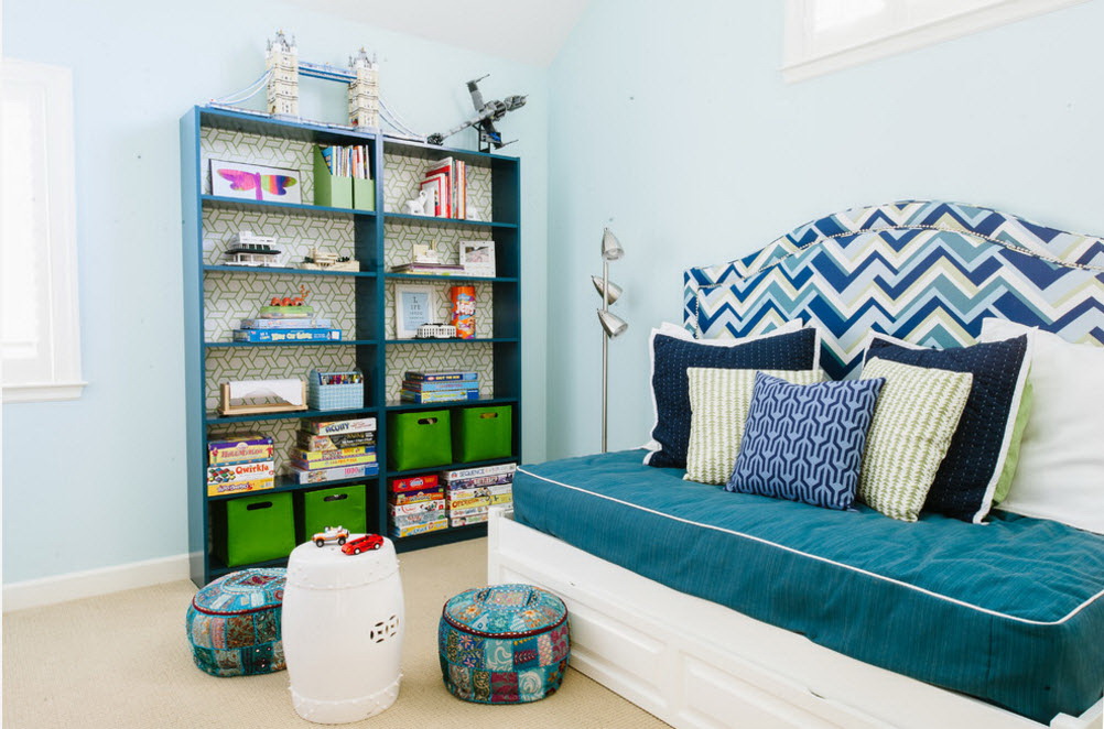 É interessante ver modelos de livros que combinam duas cores. A fachada pode ser uma sombra e as prateleiras - outra. A mistura clássica de preto e branco parece ótimo em um quarto estritamente formado.