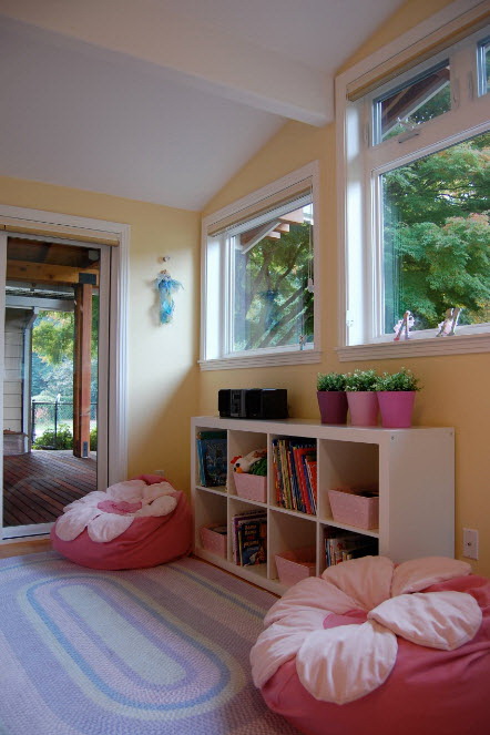 O produto de livros de uma sombra leitosa será conveniente para um quarto, berçário, o quarto do adolescente. Se você escolher um modelo adequado, poderá colocá-lo no escritório.