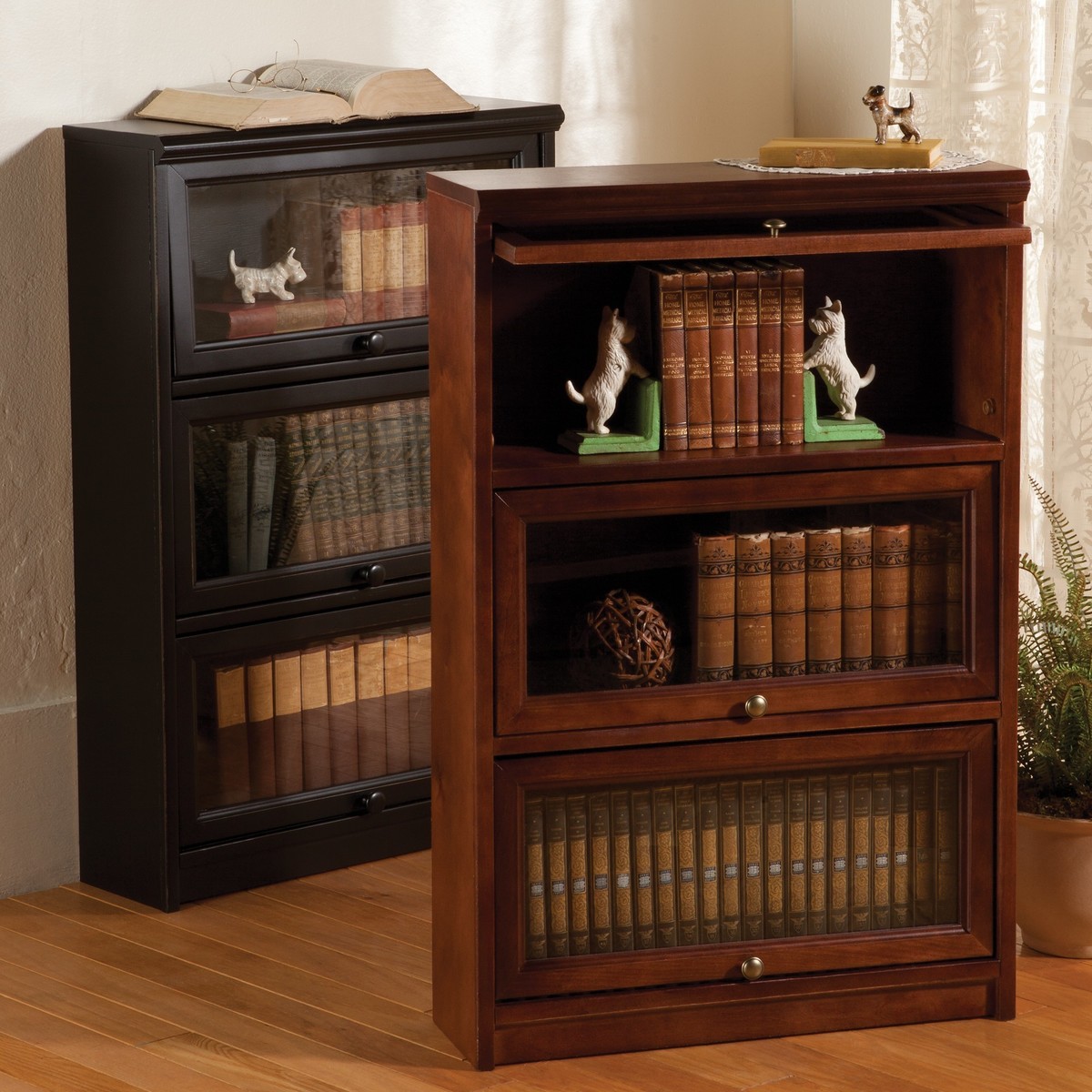 Móveis para livros vêm com prateleiras abertas, com acesso livre a livros, e fechadas, em que o conteúdo está escondido atrás de fachadas de vidro. Modelos fechados garantem que não há poeira ou umidade nos livros e não se deterioram sob a influência da radiação ultravioleta.