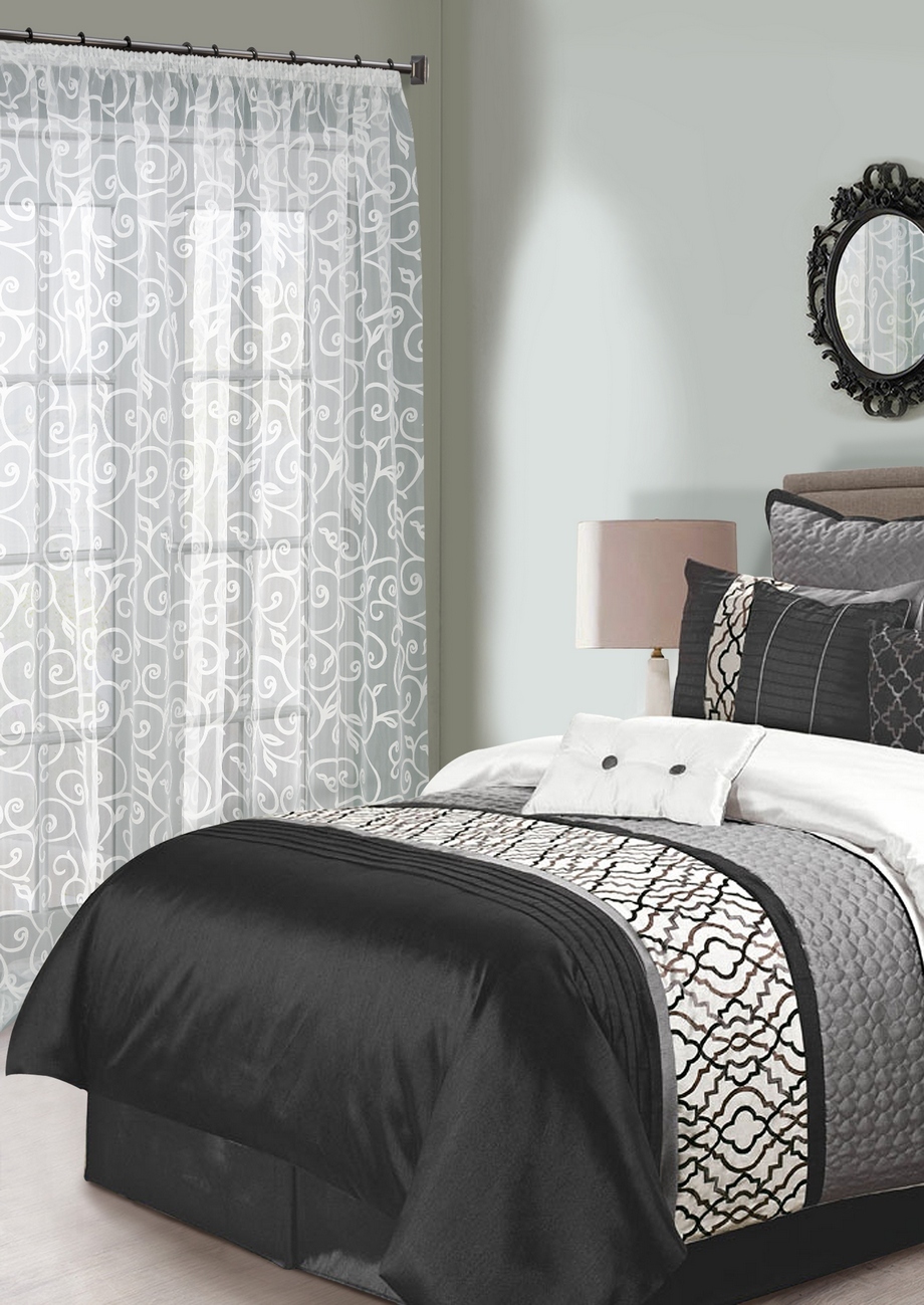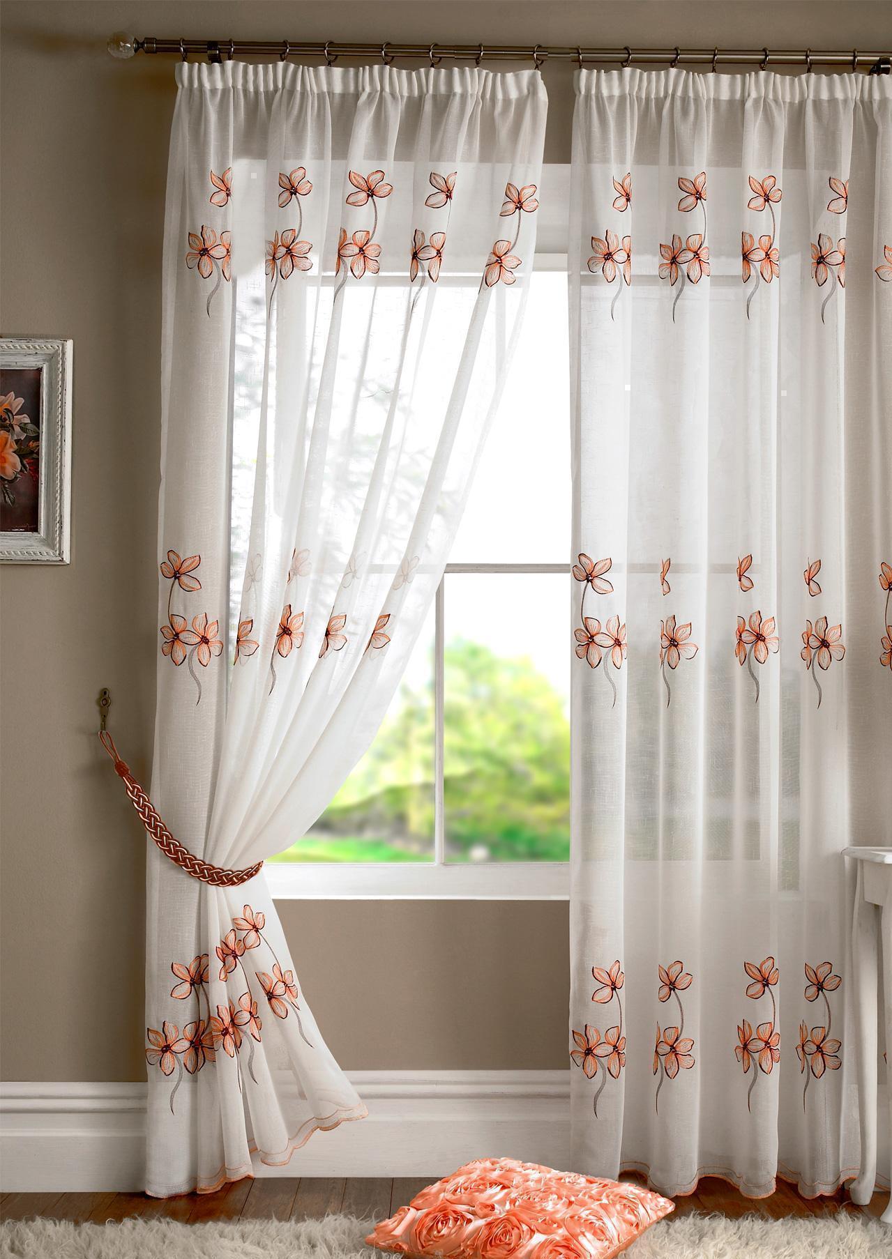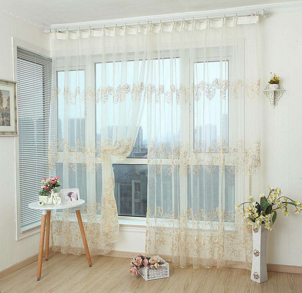 O tule de organza branco, decorado com bordados brilhantes, é adequado para o quarto de uma criança, mas para o quarto é melhor escolher uma tela leve de uma cor.