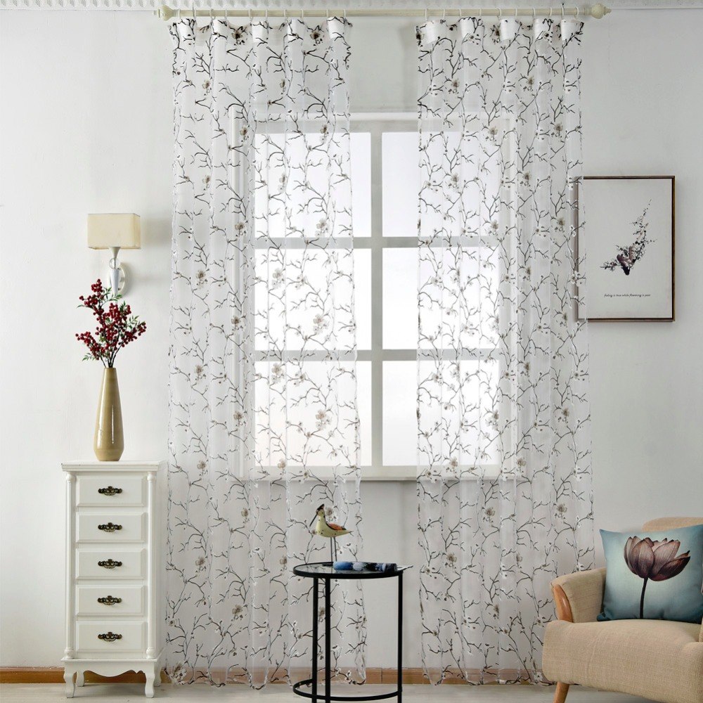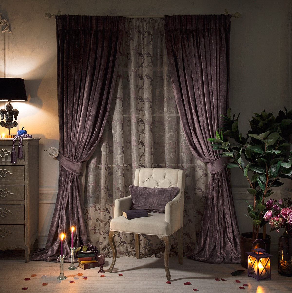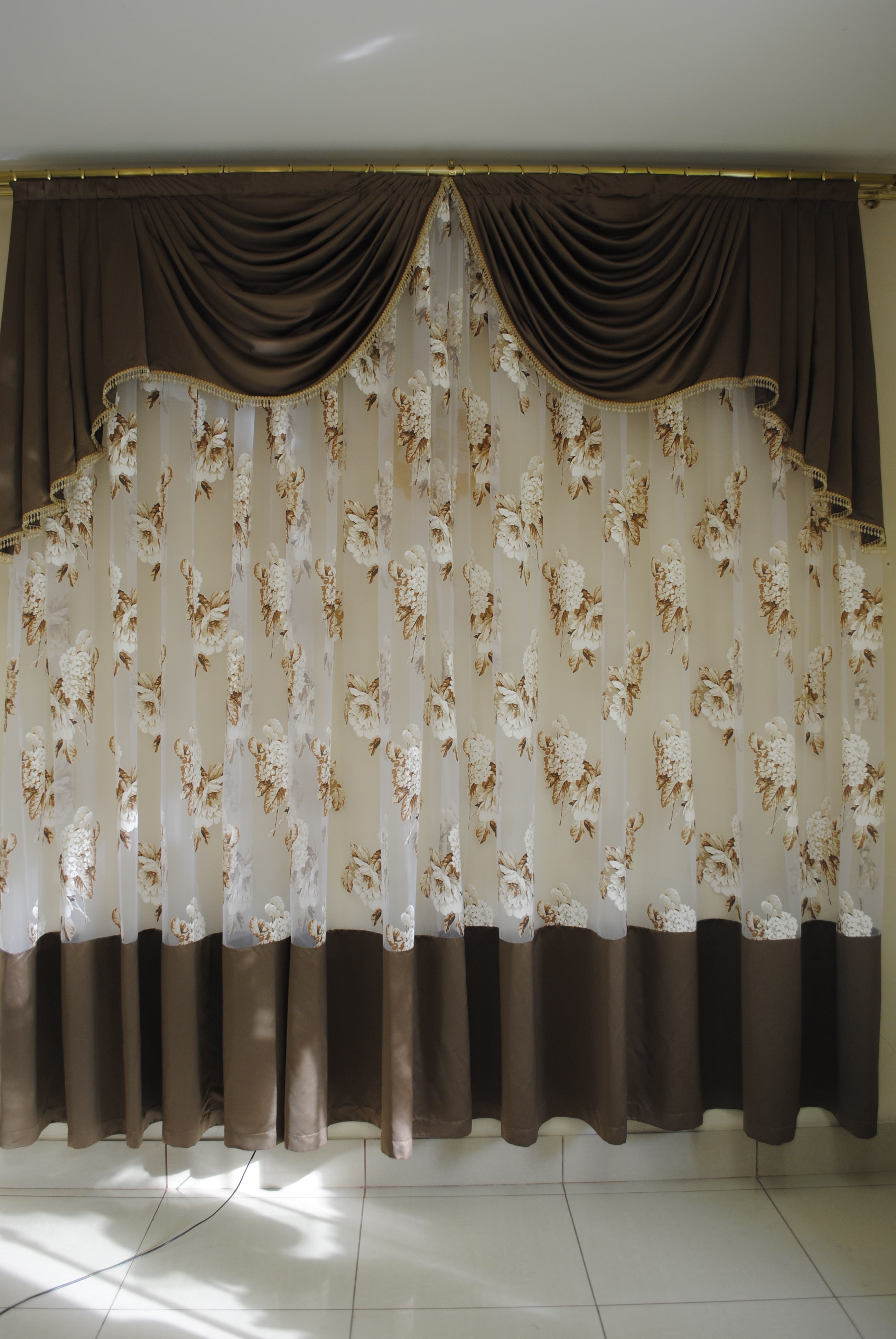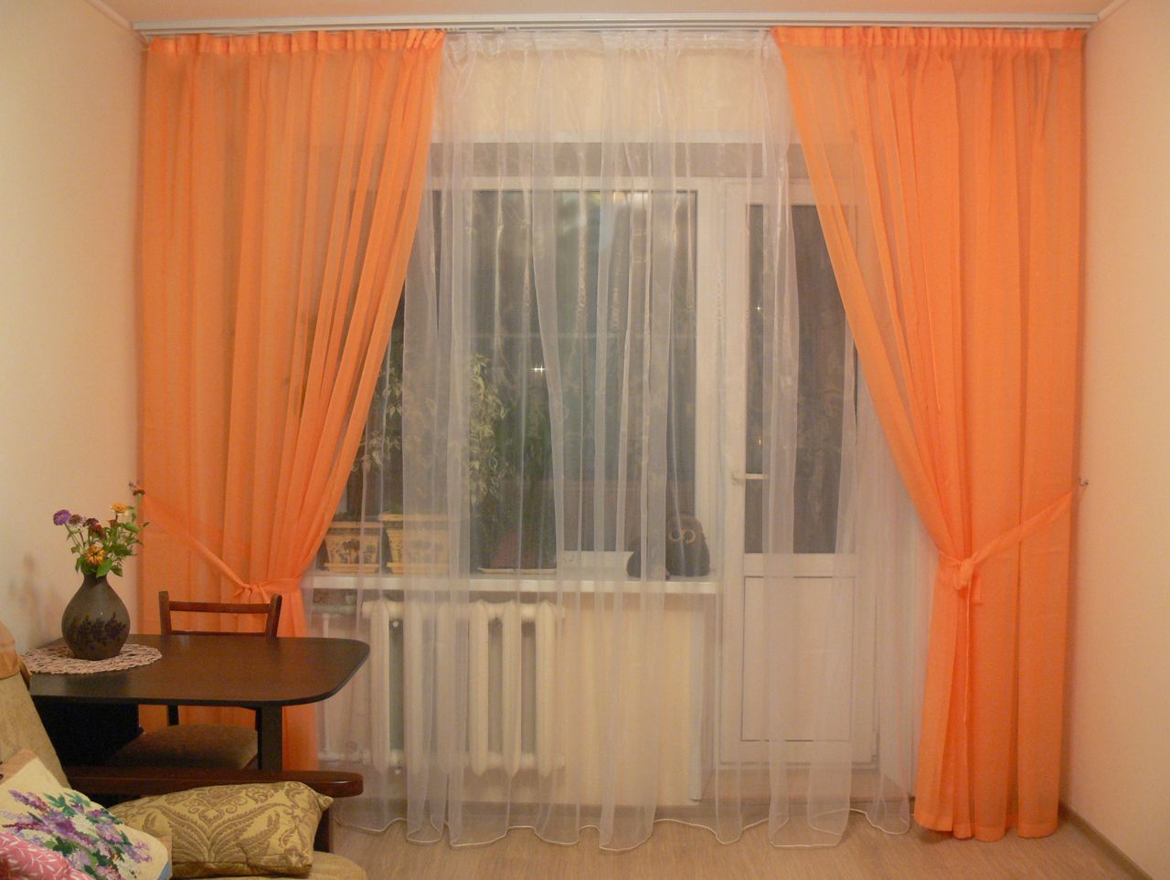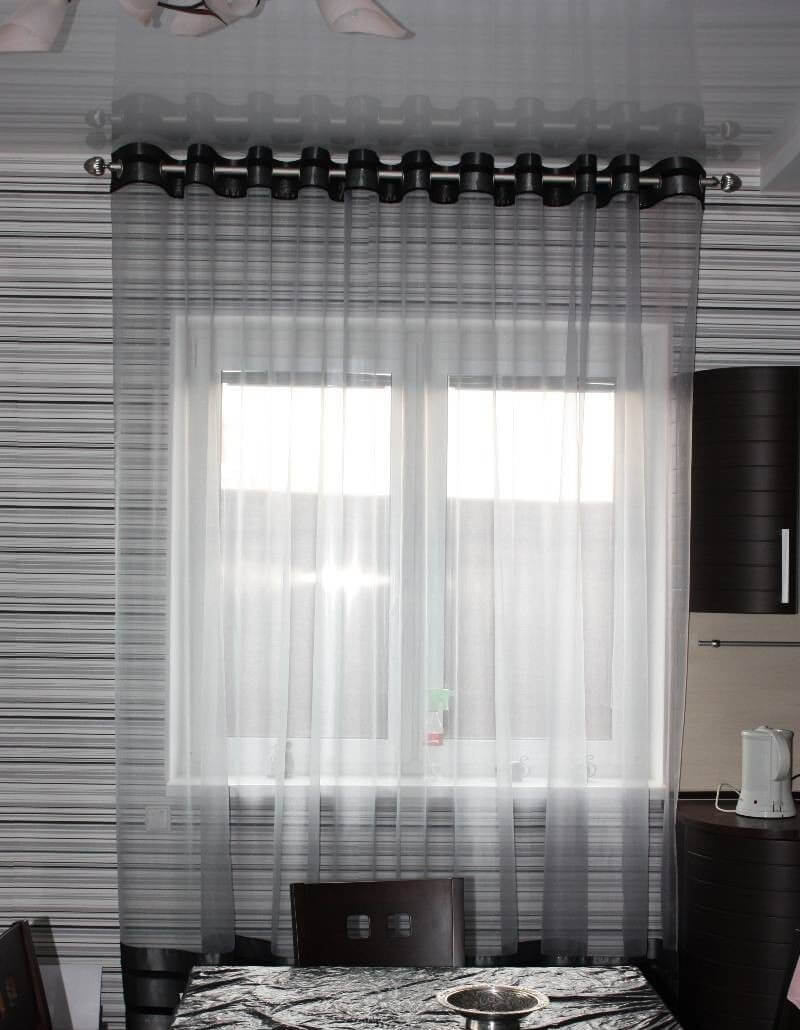 Muitas vezes, no interior, combinam uma organza monofônica transparente e um véu com um padrão de cores de tonalidade semelhante. No início, a cor monocromática é pendurada na janela e transparente com um padrão no topo. Acontece efeito volumétrico muito bonito de fumaça.