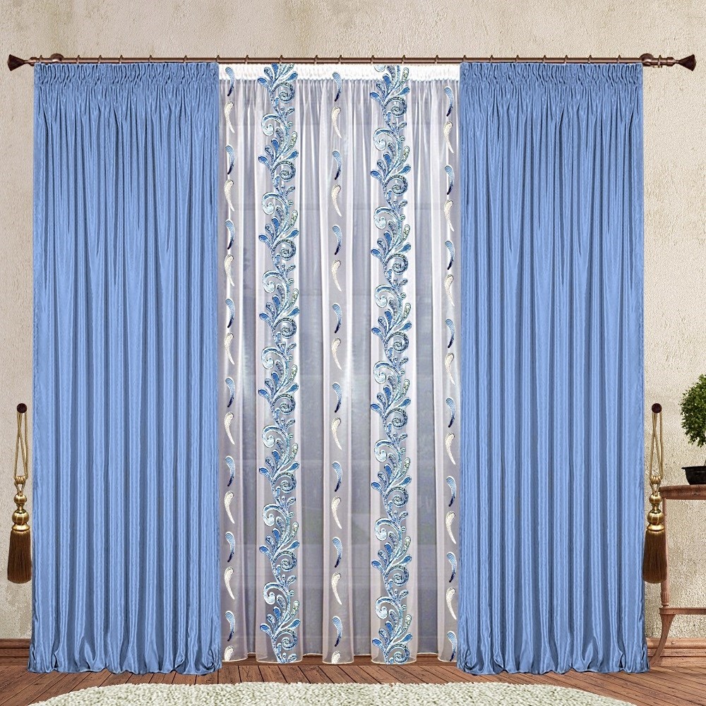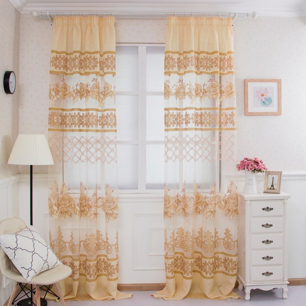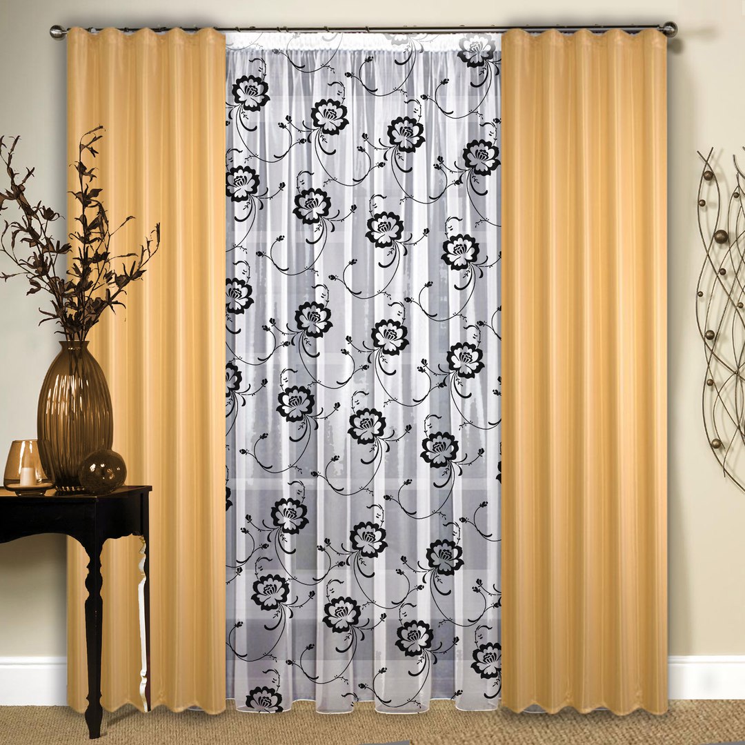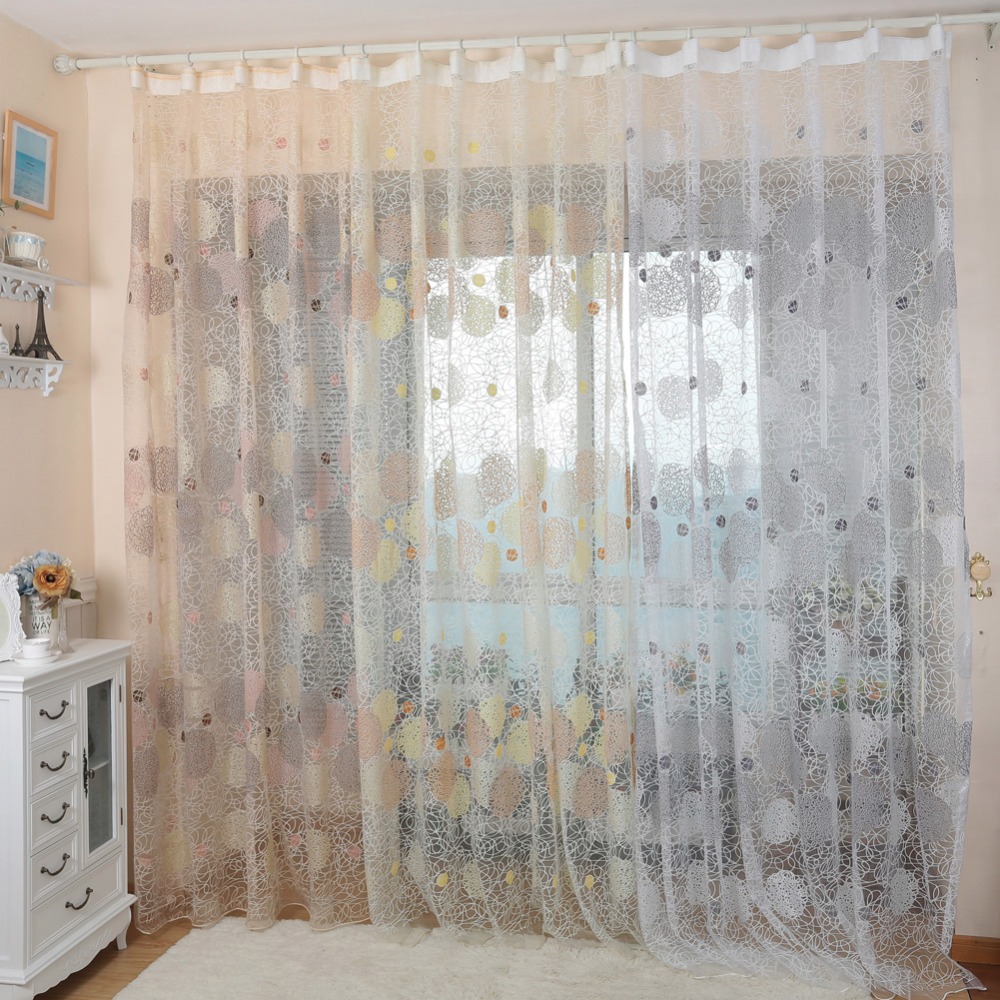Muitas vezes, no interior, combinam uma organza monofônica transparente e um véu com um padrão de cores de tonalidade semelhante. No início, a cor monocromática é pendurada na janela e transparente com um padrão no topo. Acontece efeito volumétrico muito bonito de fumaça.
