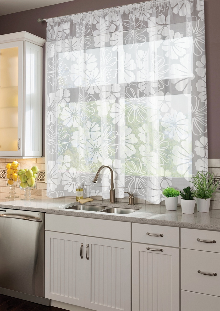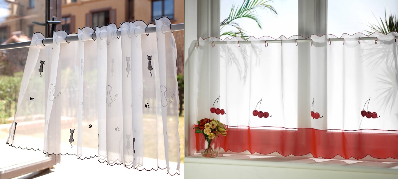Na maioria das vezes, cortinas curtas de organza costuram para a cozinha ou para o quarto das crianças. Estes modelos são muito práticos, criam aconchego, permitem a entrada de luz natural e ar fresco. Para cortinas curtas, é melhor usar um padrão discreto em um fundo claro.