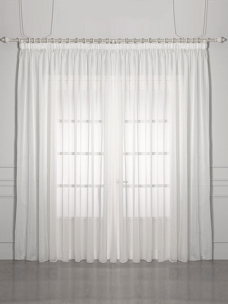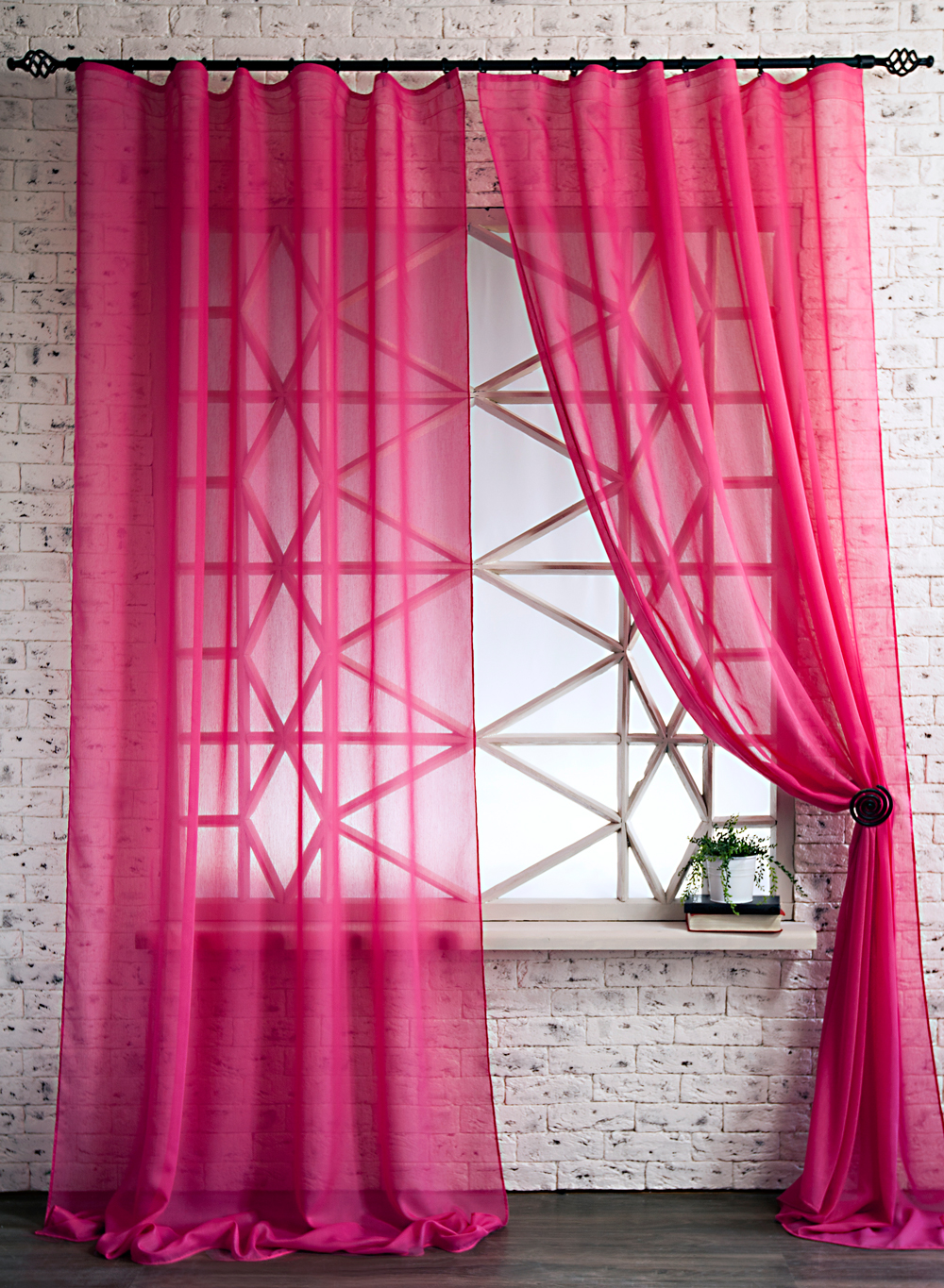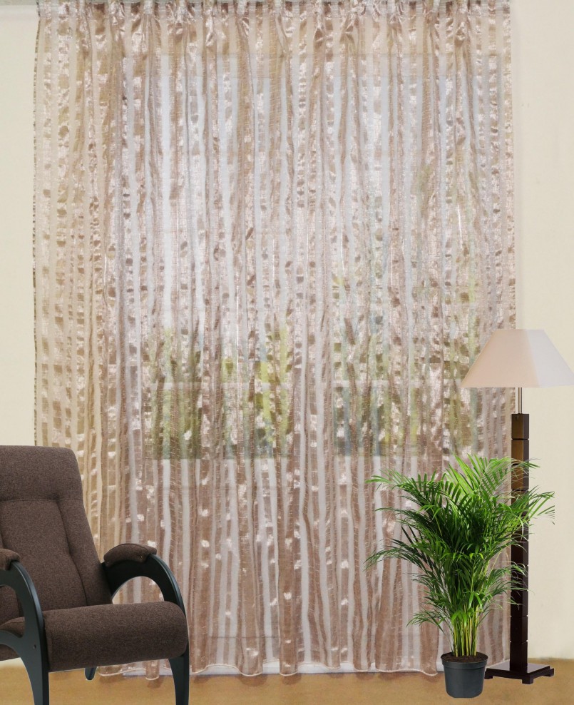 Apesar de sua leveza e transparência, a tela é fortemente montada em belas dobras. Para lambrequins melhor usar semi-organza. Este é também um tecido transparente, mas mais fosco.É mais suave ao toque, fácil de encaixar nas dobras, ideal para todos os tipos de lambrequins leves e cortinas elegantes.