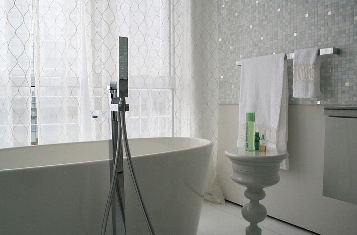 - Você pode experimentar com segurança o branco. Tons quentes trazem visualmente o objeto e fazem o frio desaparecer. Portanto, a combinação de "quente-frio", "branco-claro" equilibra o espaço visual.