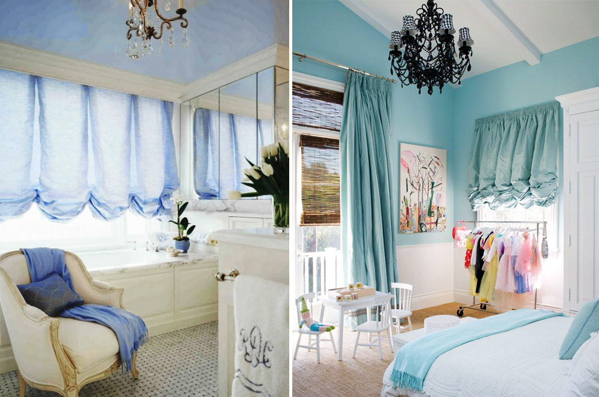 - Para o quarto das crianças, são usados frequentemente dois tipos de cortinas - translúcidas e mais densas para o escurecimento. Nesta forma de realização, o cego romano executará a função de dia-noite.