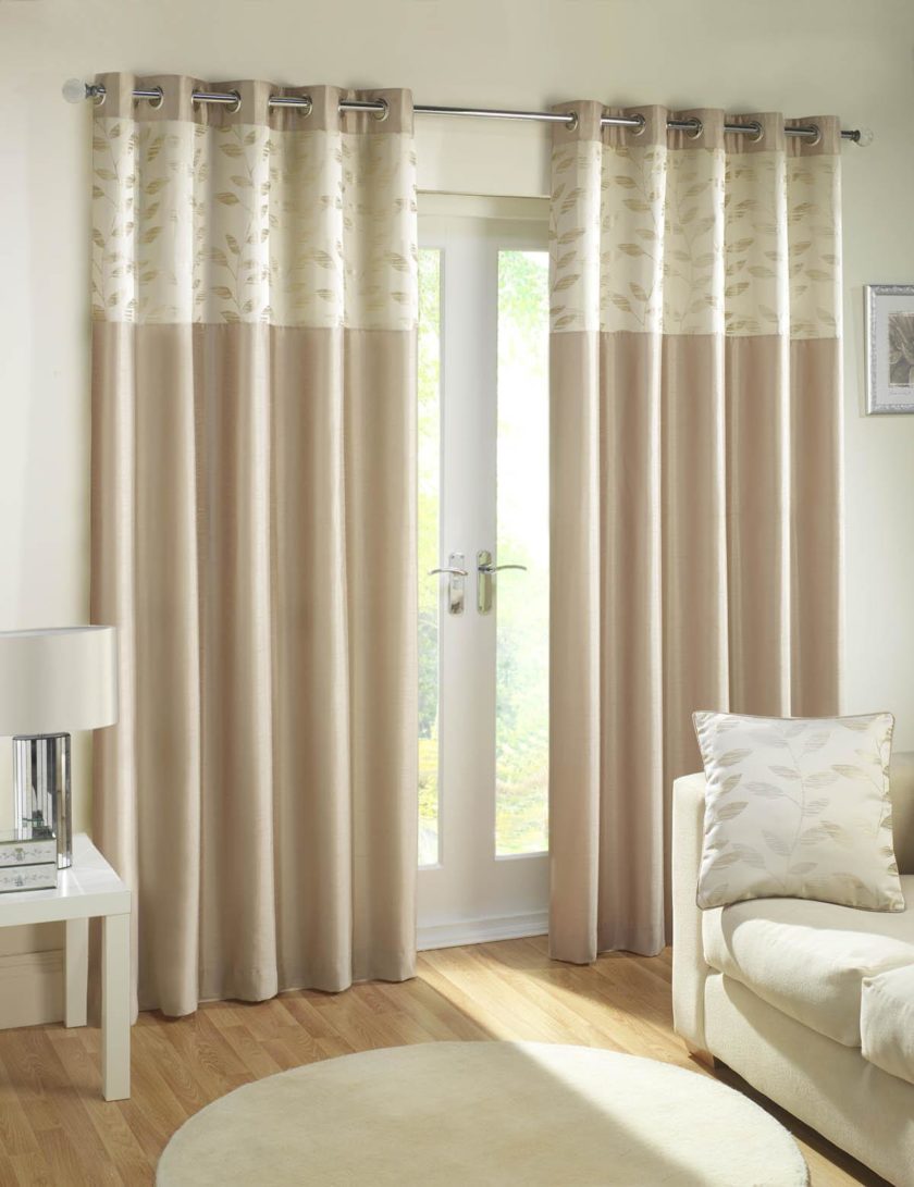- Companheiros de cortinas combinadas. Para tais cortinas, use duas folhas semelhantes em cores. Por exemplo, café com chocolate, azul com verde esmeralda, amarelo com laranja, pêssego com vermelho.