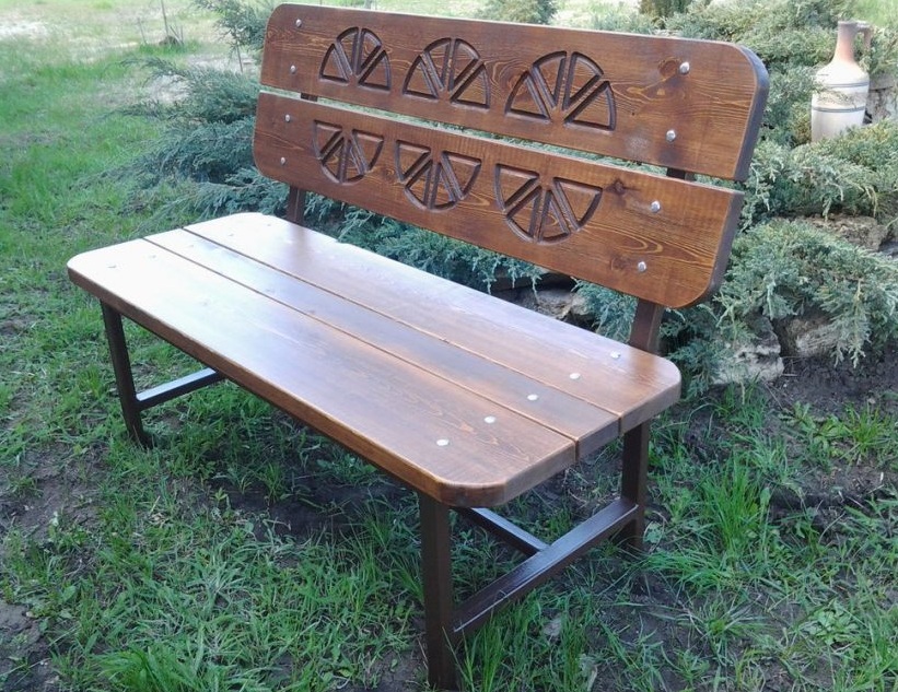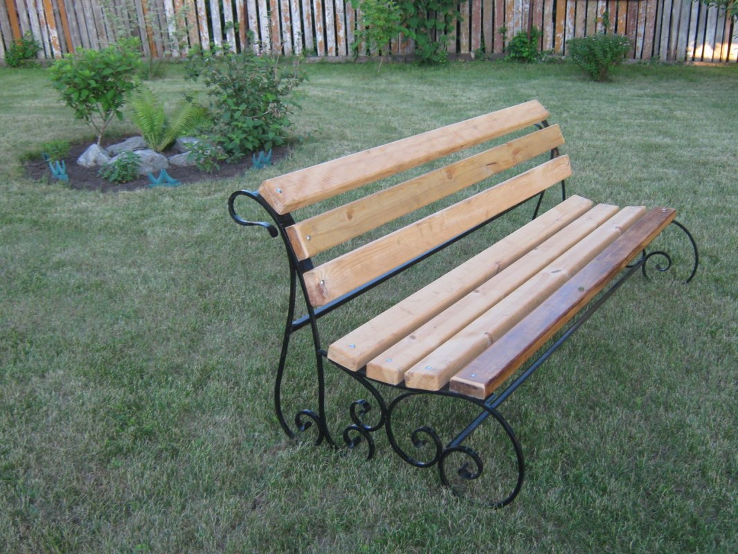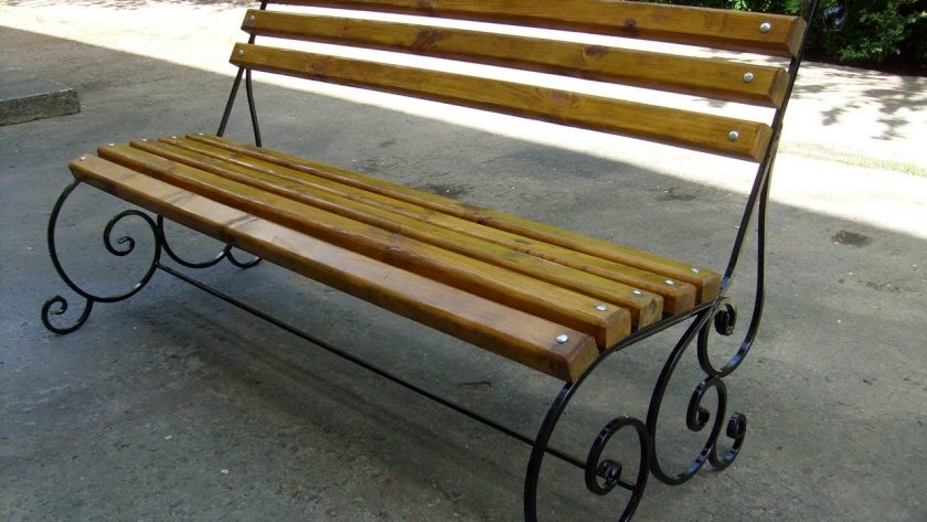 Tais estruturas são construídas na produção. A dificuldade é que você precisa ter as ferramentas para criar as formas necessárias a partir do metal. Ele é construído como um suporte. Faça braços e pernas de um desenho dele. A árvore aplica-se a sentar-se e costas. Esta deve ser uma madeira densa, que é pré-tratada com impregnações que protegem contra o apodrecimento: