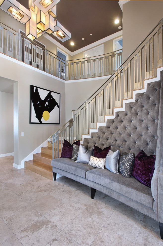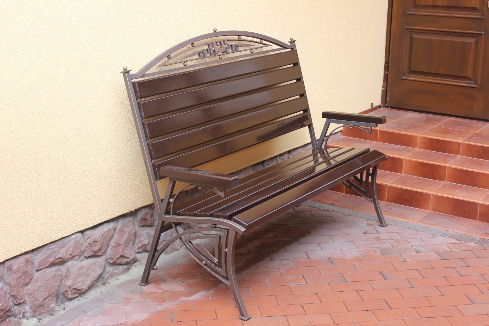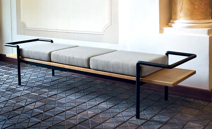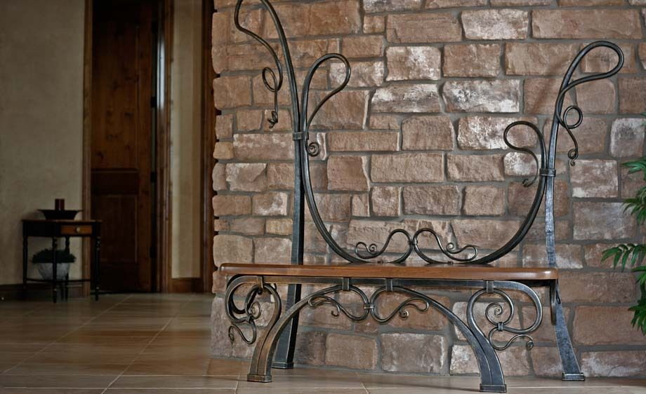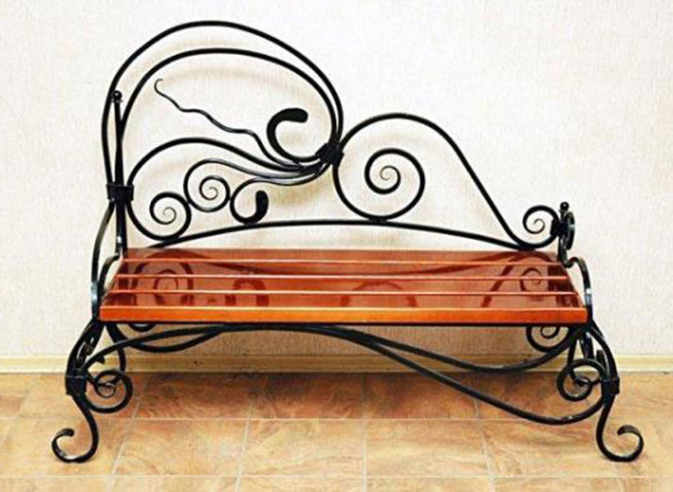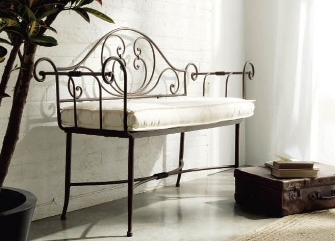 - forjado - não é adequado para todos os corredores. Para que não sobrecarregue este espaço, tais estruturas são construídas em pequenos. Eles executam apenas sua função principal - você pode sentar-se confortavelmente nele. A mobília pode ser apoiada ou construída com belos braços estampados;