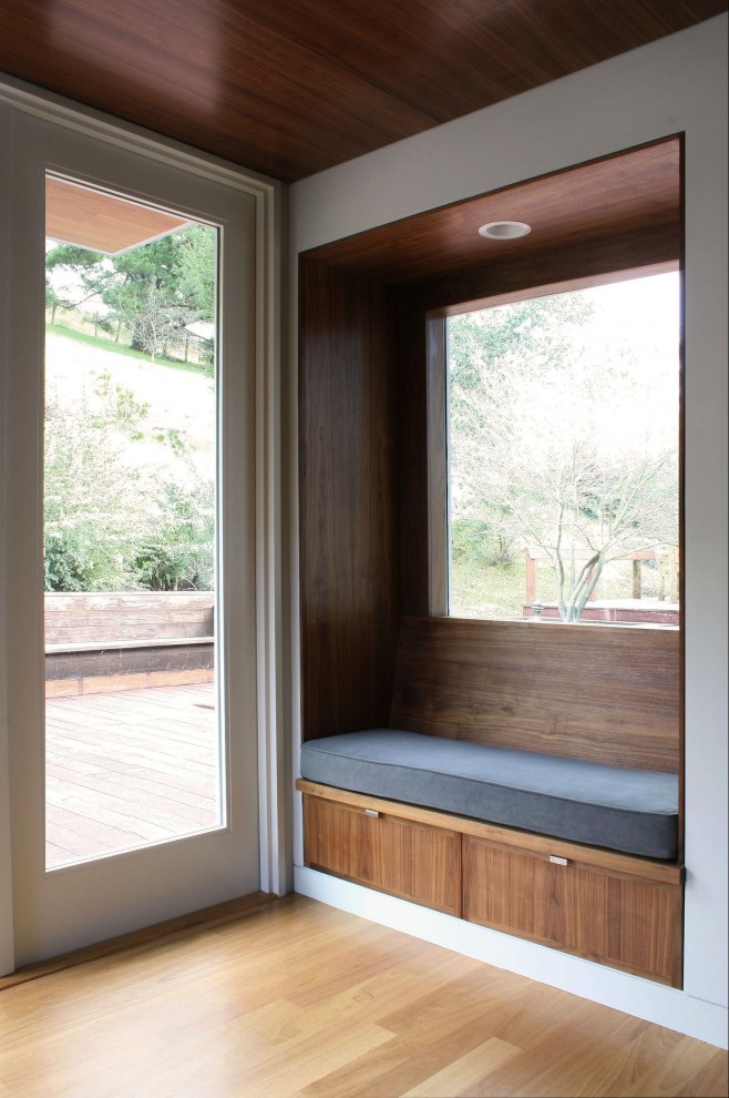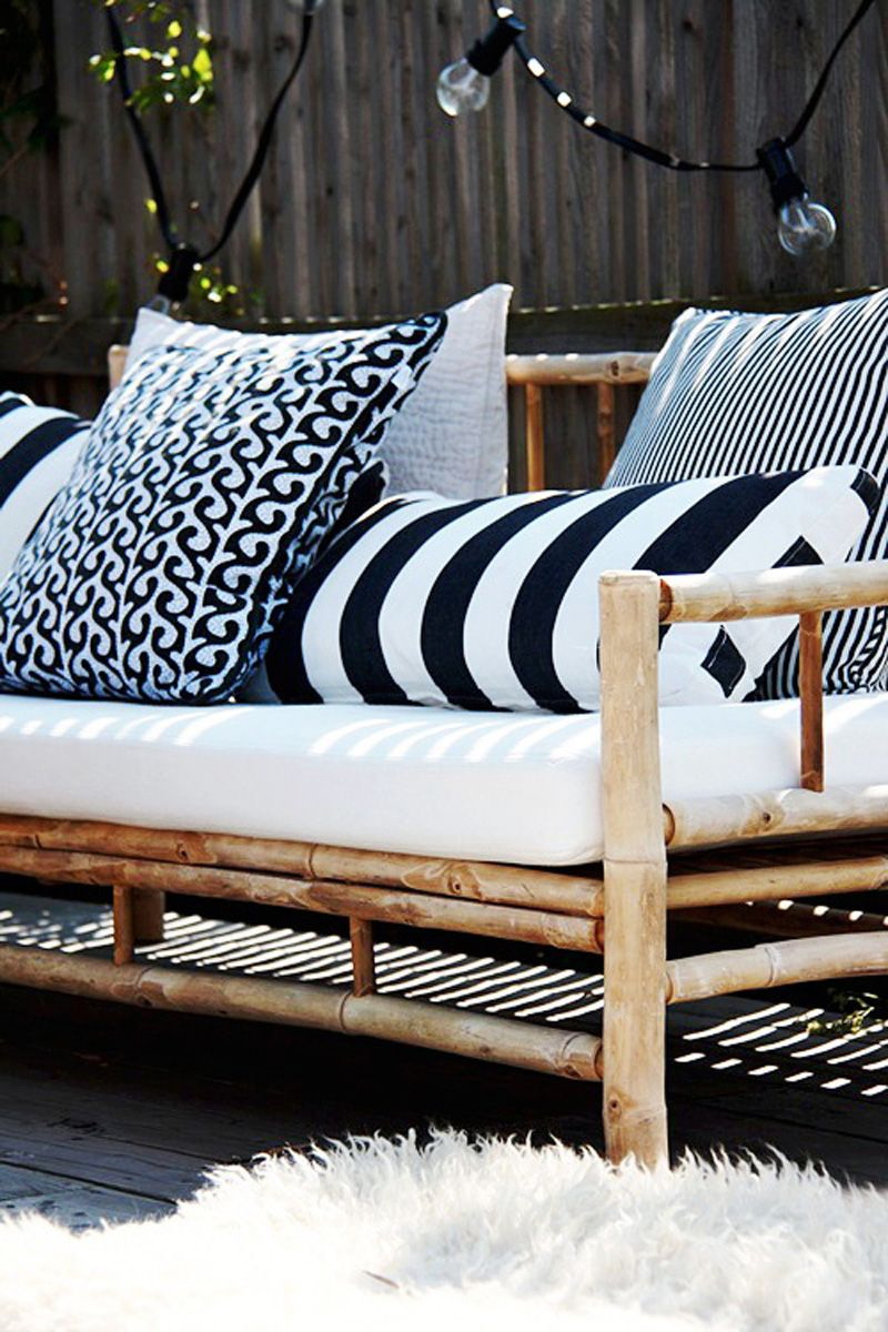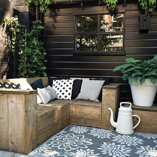 - Escandinavo estilo envolve o uso de muitos objetos quentes e macios. Bancos são construídos para gazebos grandes, eles são estacionários com assentos largos, costas altas. Para tornar esse mobiliário atraente, almofadas macias são adicionadas, que são feitas sob medida para o tamanho do mobiliário.