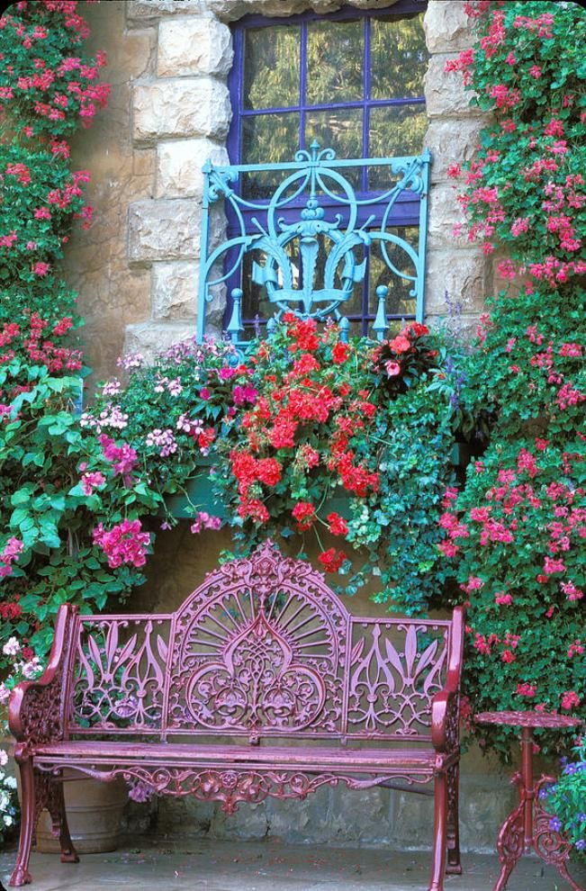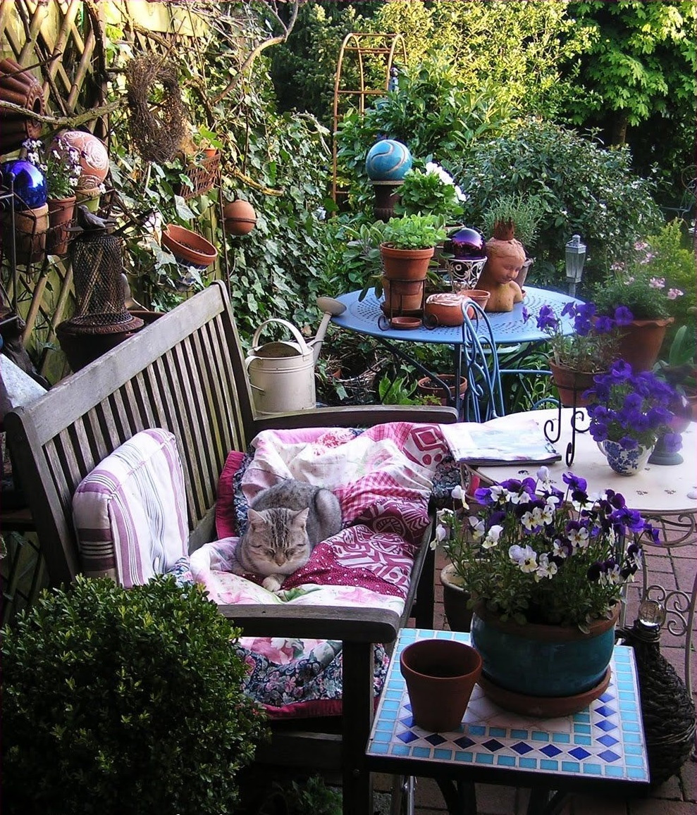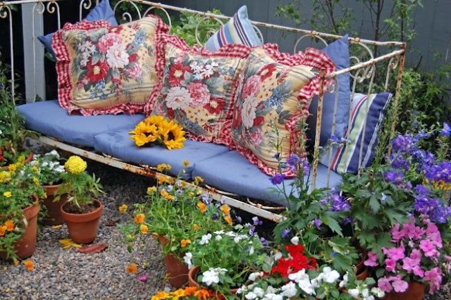 - estilo rústico ou música country - canteiros de flores brilhantes, de madeira vedaçãoárvores e camas;