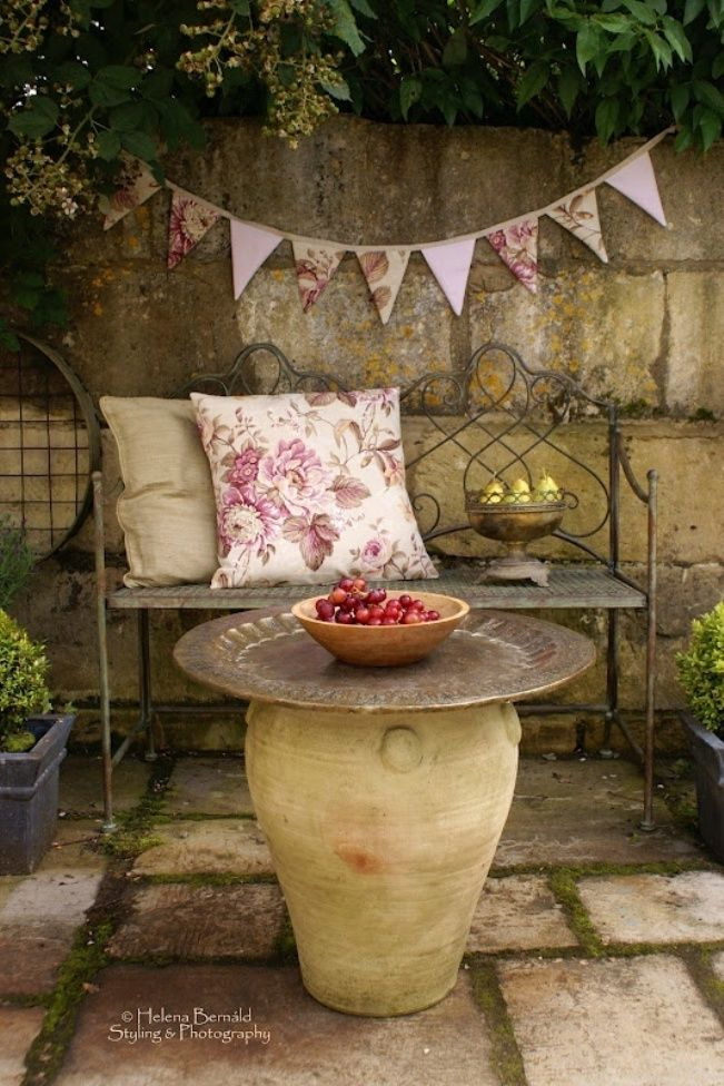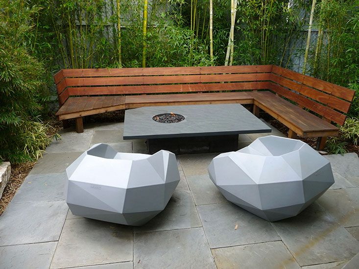 Você pode instalar móveis de pedra em jardins regulares perto da fonte ou estátua de pedra. Ele irá complementar um estilo único e trazer um destaque para ele.. Elementos de madeira parecerão inadequados.