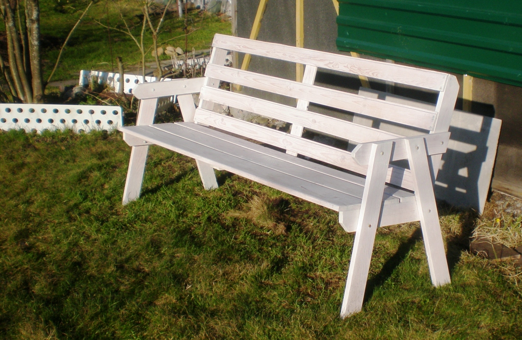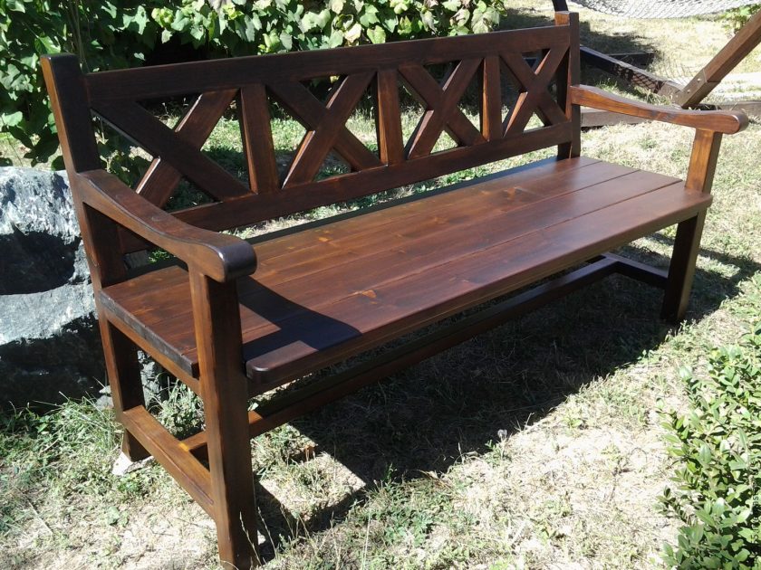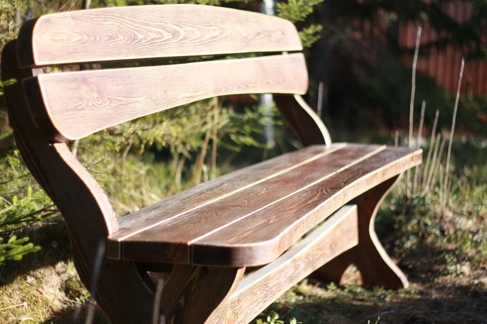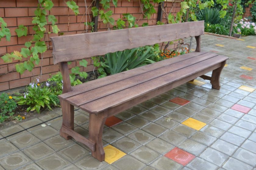 Para proteger o material da umidade, é necessário revesti-lo com uma mancha e, em seguida, com uma laca repelente à água. Ele seca por 36 horas, então depois do trabalho você não pode usar o banco por vários dias. Tais estruturas com bom atendimento servem cerca de 20 anos. Ao longo do tempo, o quadro pode ser substituído por metal, o que aumentará a vida útil.