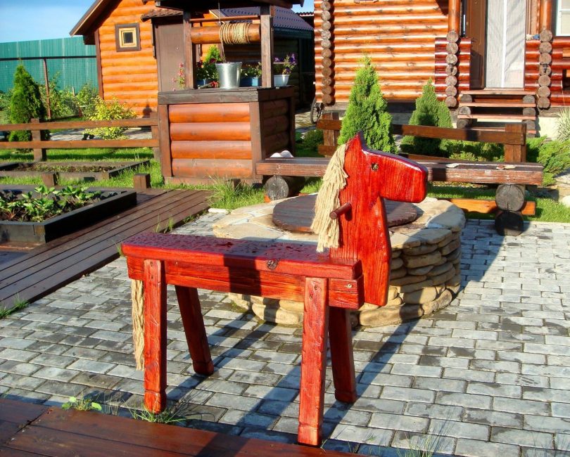 Por exemplo, para um pequeno jardim em estilo rústico, desenhos feitos de madeira ficarão lindos. Em alguns casos, você pode usar o banco, que combina metal, madeira. Eles enfatizarão o estilo refinado, serão agradáveis a suas adições. Você não pode instalar modelos de pedra. Eles vão se destacar do fundo da bela vegetação e camas bem cuidadas.