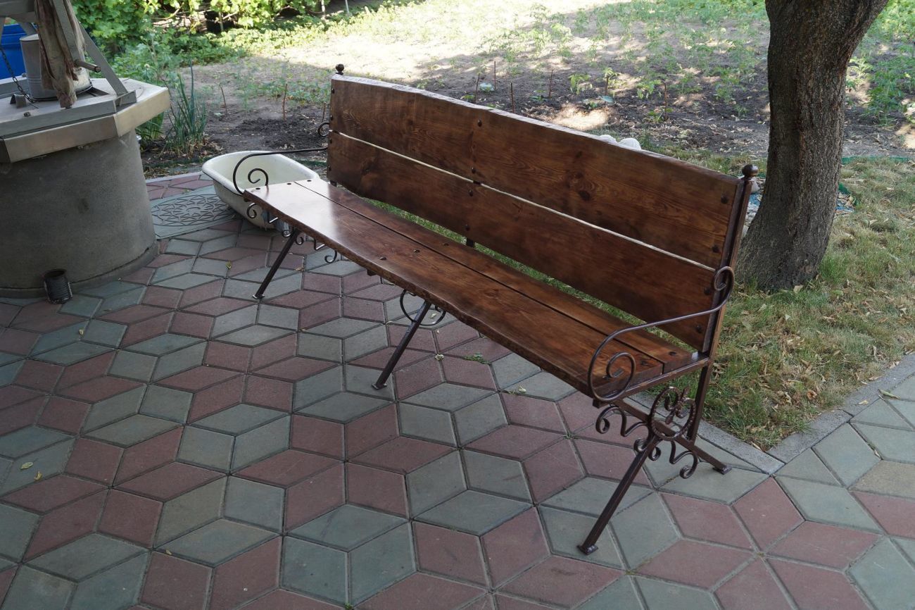 - combinado - madeira e metal usados. Esses projetos são práticos e confiáveis. O esqueleto da estrutura é construído em metal, e as partes nas quais as costas estão assentadas ou apoiadas são feitas de madeira.
