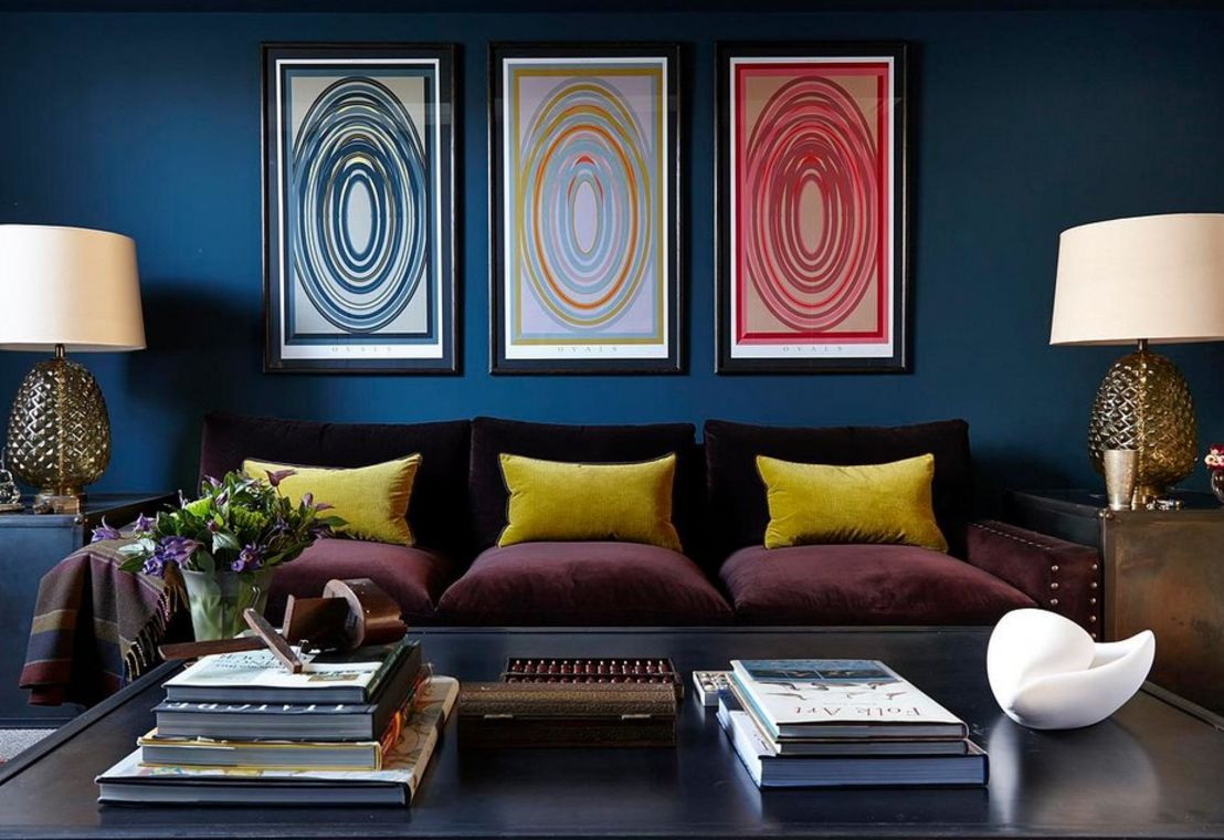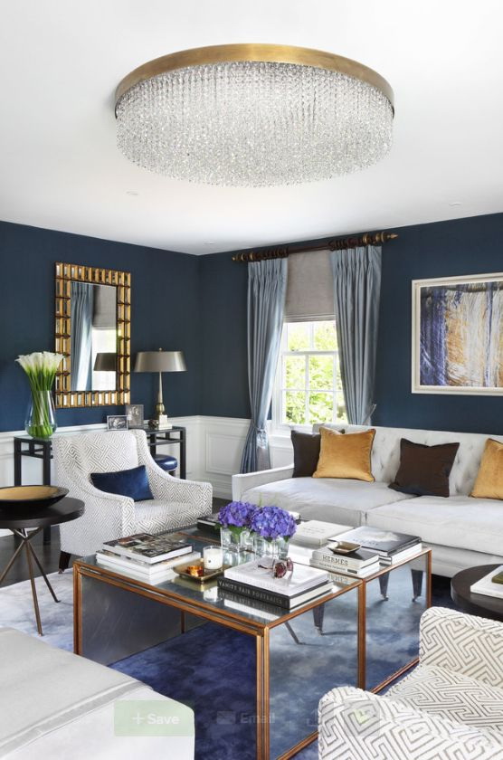 - Clássico - neste estilo vale a pena destacar com algo azul escuro: paredes, pisos, tetos, móveis estofados. Certifique-se de que eles devem pegar apropriado para os acessórios de tom: cortinas, capas, vasos, estatuetas, flores.
