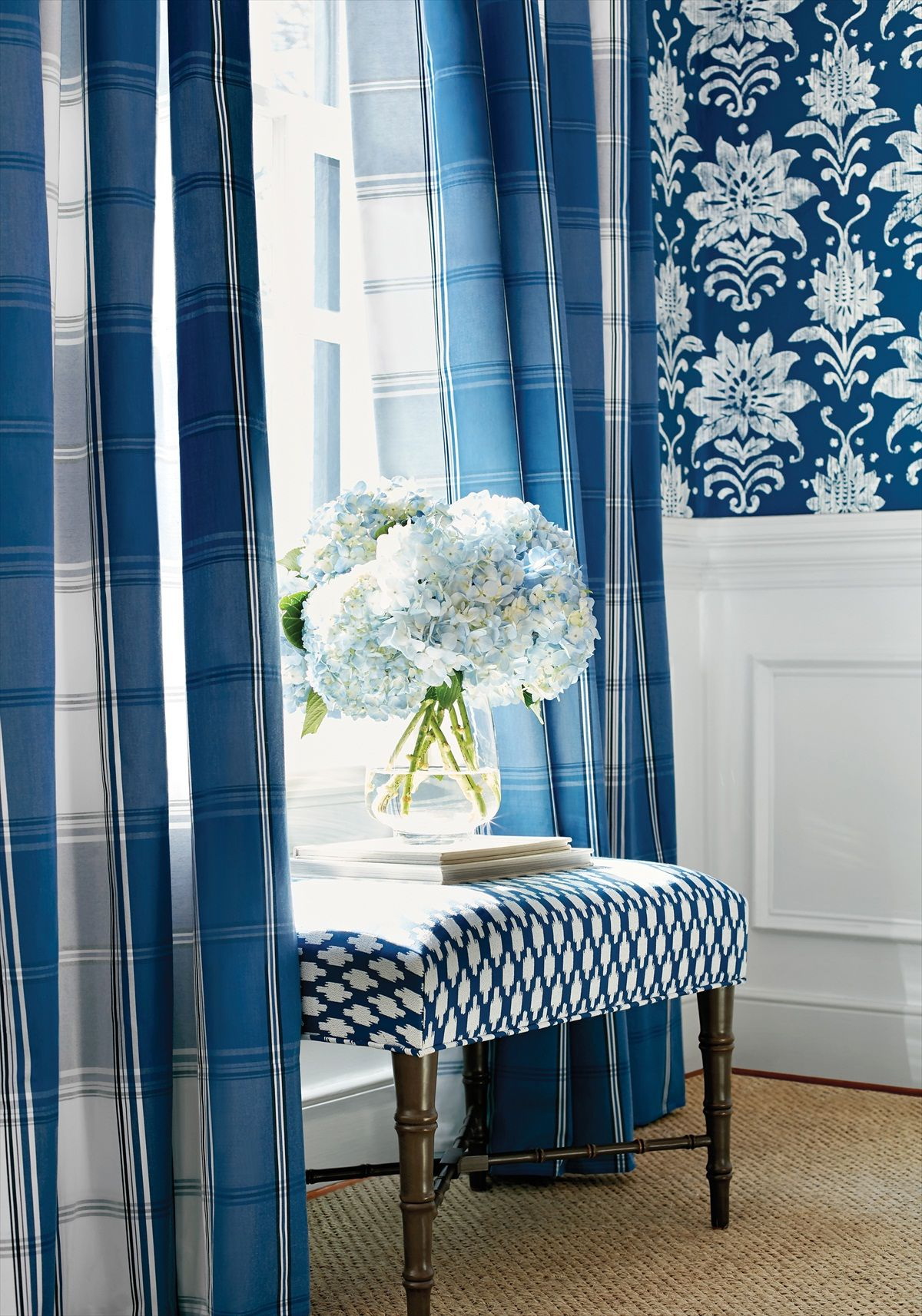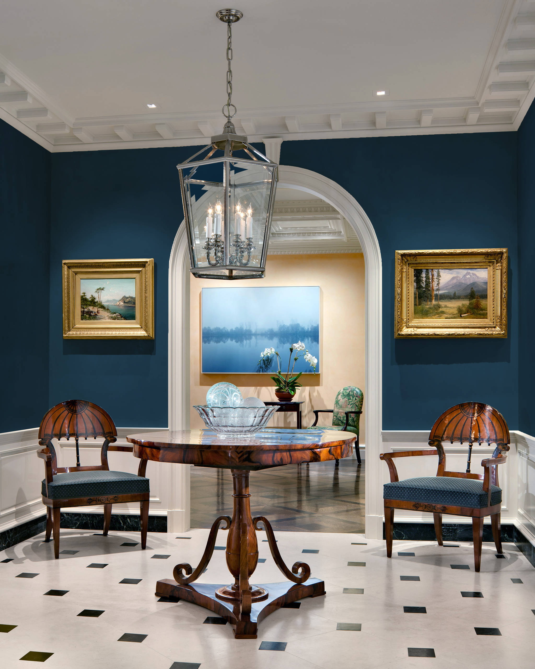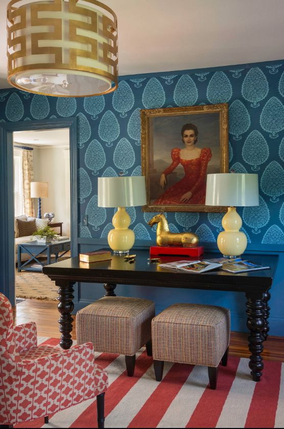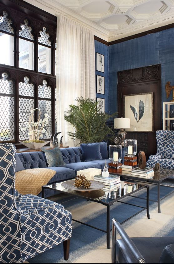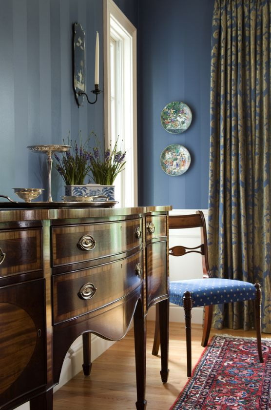 - os clássicos - cortinas pesadas, móveis maciços, decoração - e tudo isso de materiais naturais combinados com azul transmitem o luxo e a contenção dos clássicos.