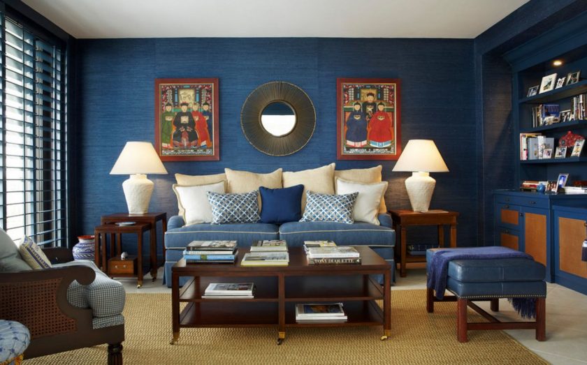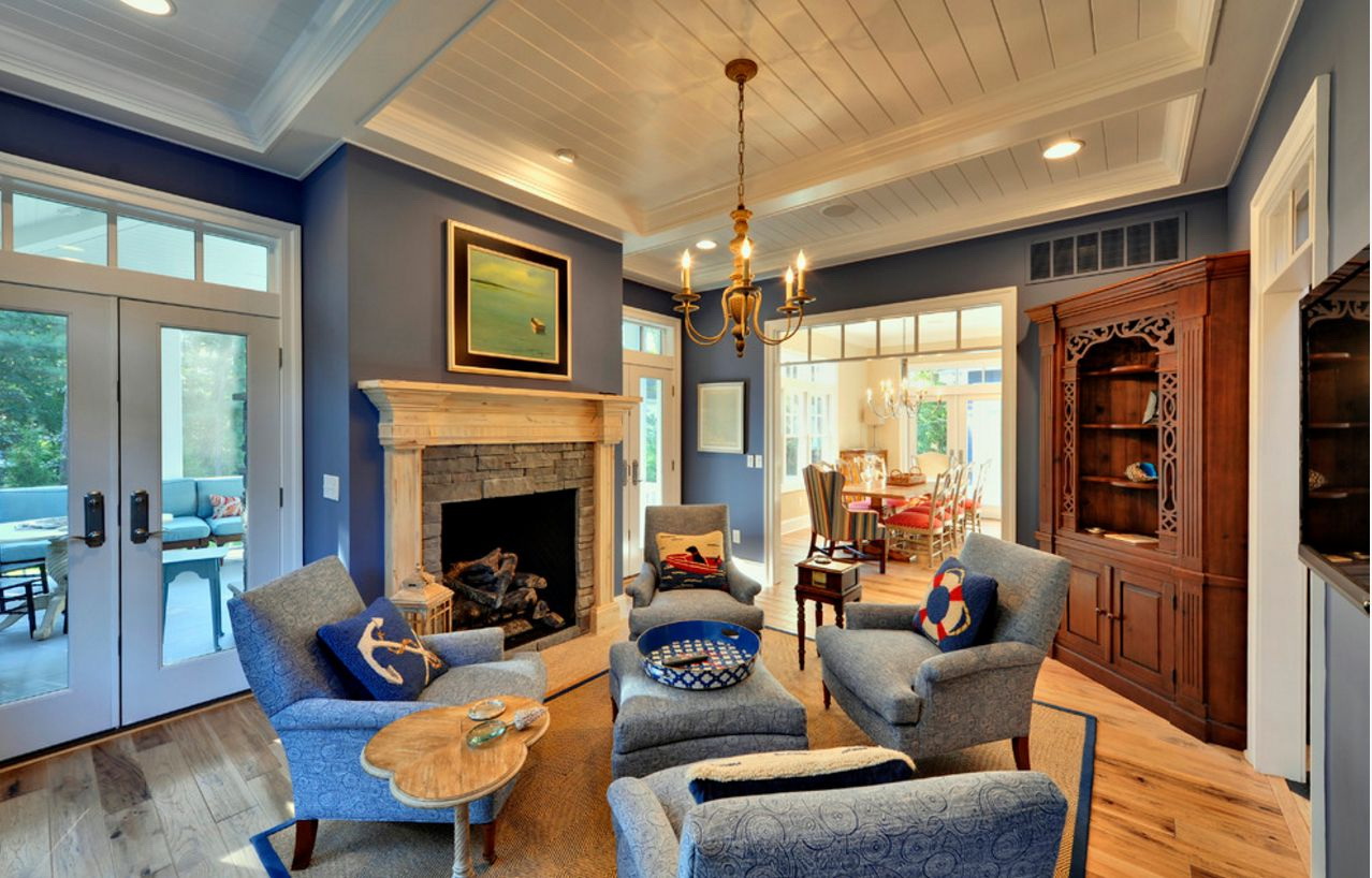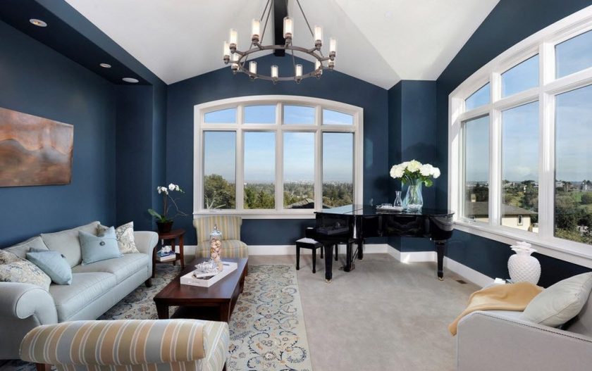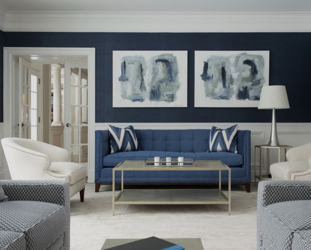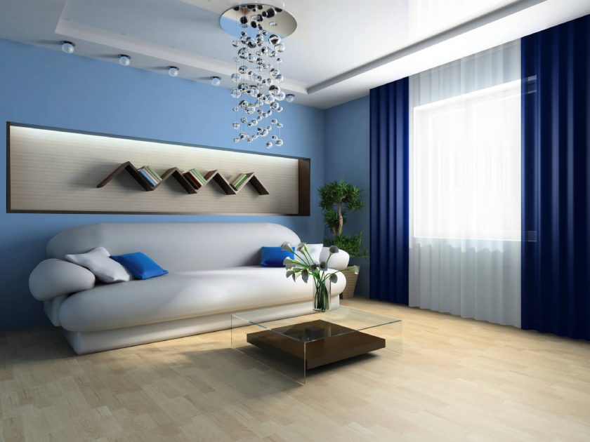 Azul é considerado um tom de relaxamento, satura o interior com frescor, leveza e dá profundidade. Estar em tal sala, uma pessoa se livrar das ansiedades e pensamentos negativos que estão pressionando sobre ele. O interior é envolvido por sua frieza e tranquilidade.