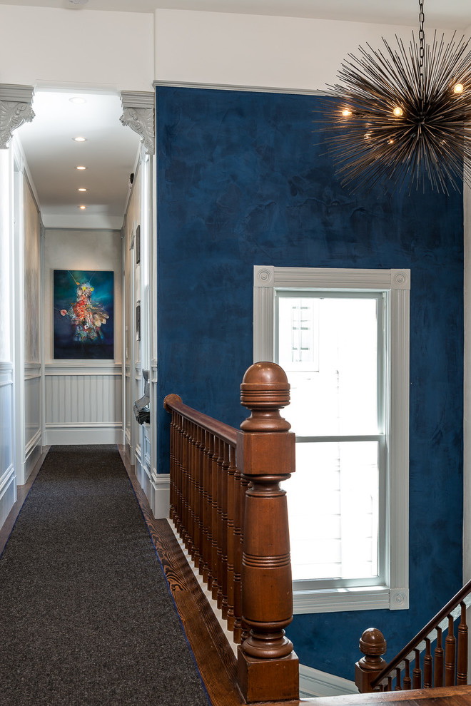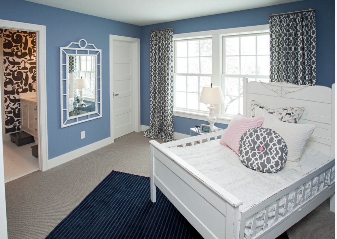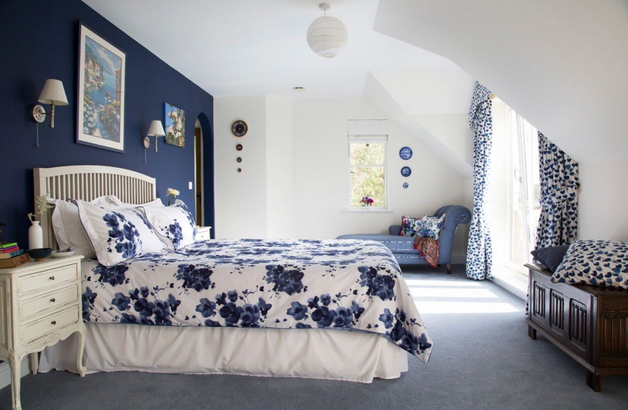 A paleta de azul é bastante ampla, variada e saturada. Se esta tonalidade for escolhida como o tom principal das paredes, deve dar preferência a cores suaves e pastel, por exemplo, azul-celeste, azul-centáurea-claro, azul-pardo, azul provençal, misturas com roxo, lavanda, roxo e semelhantes.