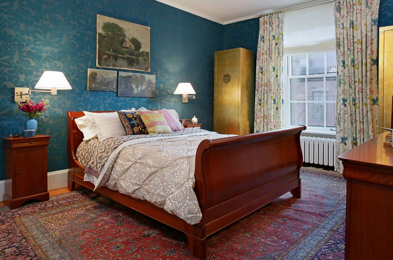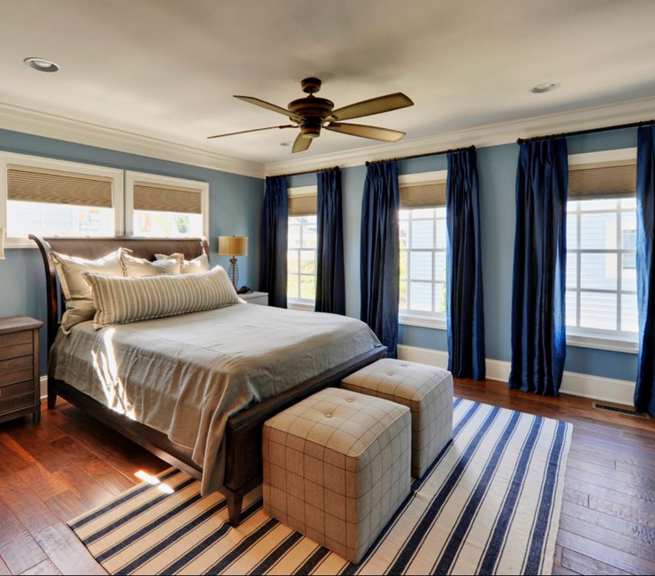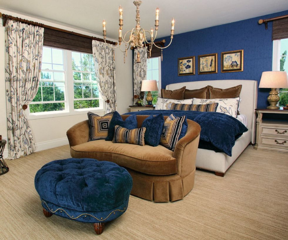 Além disso, no quarto são usados branco, marfim, bege, leite, todos os tons de marrom. Azul no quarto pode ser combinado com outras cores nos seguintes estilos: