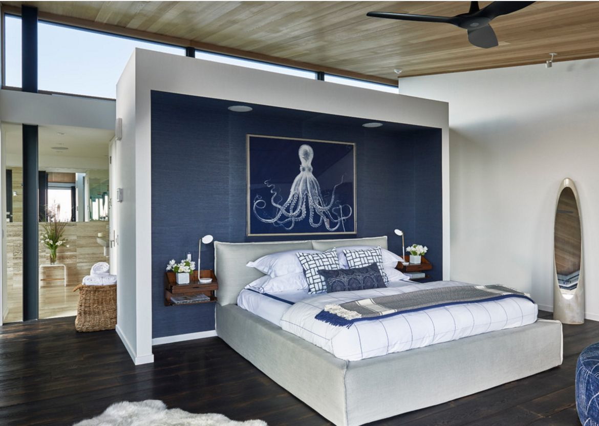 - minimalismo - suficientes paredes saturadas e roupa de cama branca, espelhos e móveis de madeira para criar uma sensação de imersão no fundo do mar;
