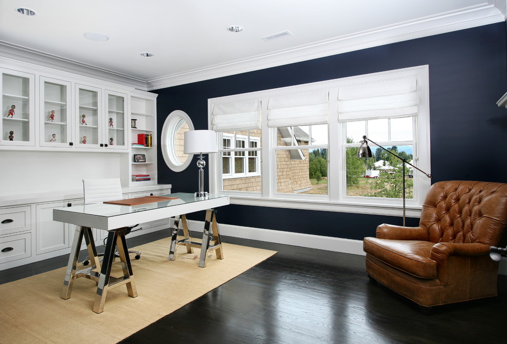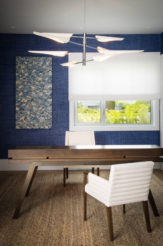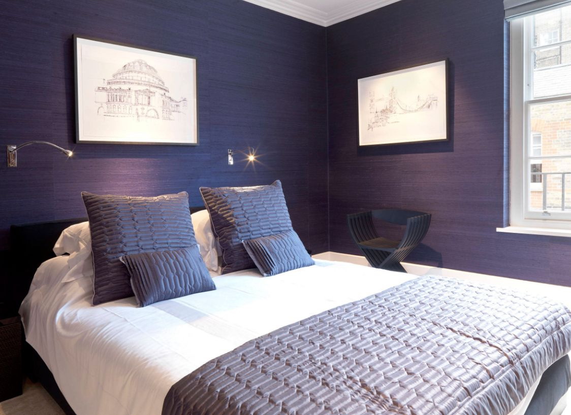 Não há lugares menos adequados para decorar com cores - o quarto ou sala de estar. Vai caber no escritório, na sala de jantar e em qualquer outro cômodo. Ele é capaz de dotar o espaço de profundidade, torná-lo visualmente maior e mais espaçoso, apesar do fato de que a sombra pertence ao grupo de cores escuras. Mas tal efeito pode ser alcançado na condição de um uso medido de cor no interior e sua colocação hábil.