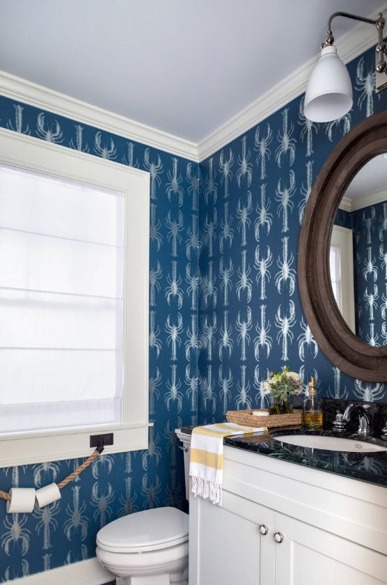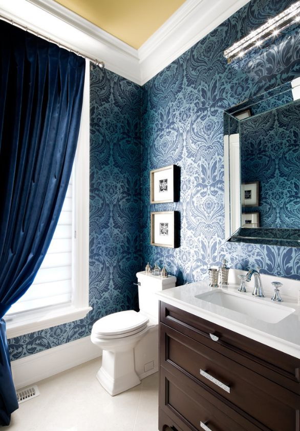 Papel de parede azul na cozinha deve ser alisado com tons quentes de móveis e tecidos. É melhor escolher tons claros de azul, bem como papel de parede, que são usados em combinação com flores de ouro, prata, cinza ou lavanda. Para o quarto das crianças, você pode escolher um papel de parede com uma imagem adequada em azul. Eles não vão sobrecarregar a situação, fazer o forçamento interior.
