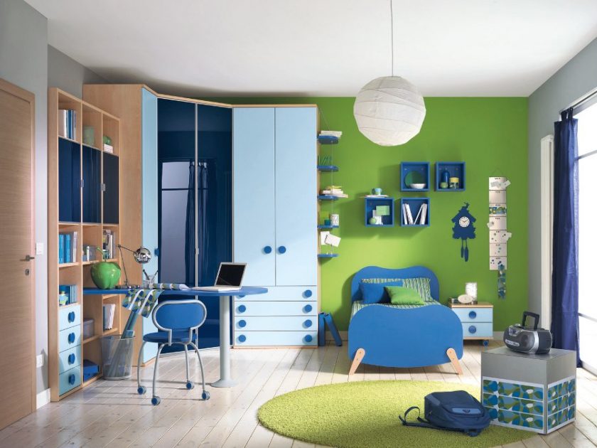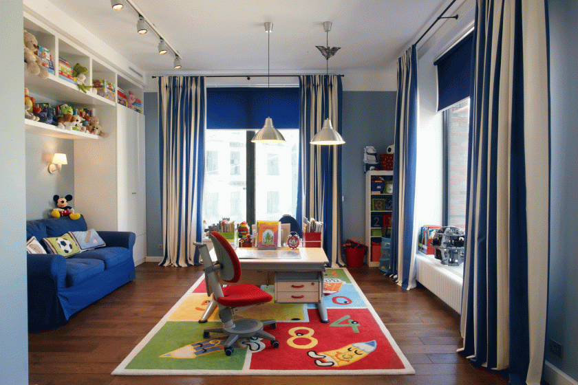 A escolha da cor primária depende da natureza da criança. Crianças muito ativas e inquietas, essa cor é perfeita.Mas crianças fechadas e até apáticas se sentirão desconfortáveis em um cenário azul.