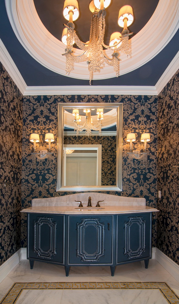 - Papel de parede para teto azul. Na melhor das hipóteses, tons claros são escolhidos para criar um contraste com paredes ou pisos azuis ricos.